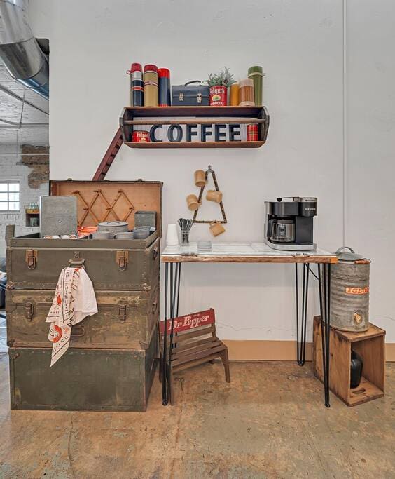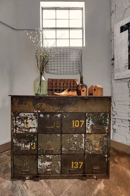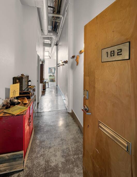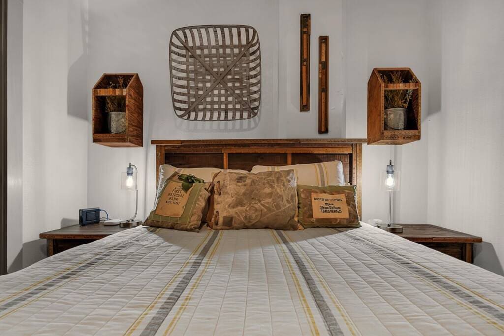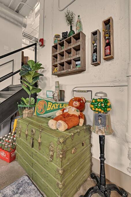 Discover a truly unique stay in the heart of downtown Waco. Just steps from the Magnolia Silos, Waco Riverfront, and charming downtown shops, this industrial-style loft offers an unforgettable experience. Located in the historic Behrens Lofts, this beautifully designed condo blends vintage character with modern comfort. Thoughtfully curated with custom-built pieces, unique decor, and even a hidden scavenger hunt, every corner of this space has a story to tell.