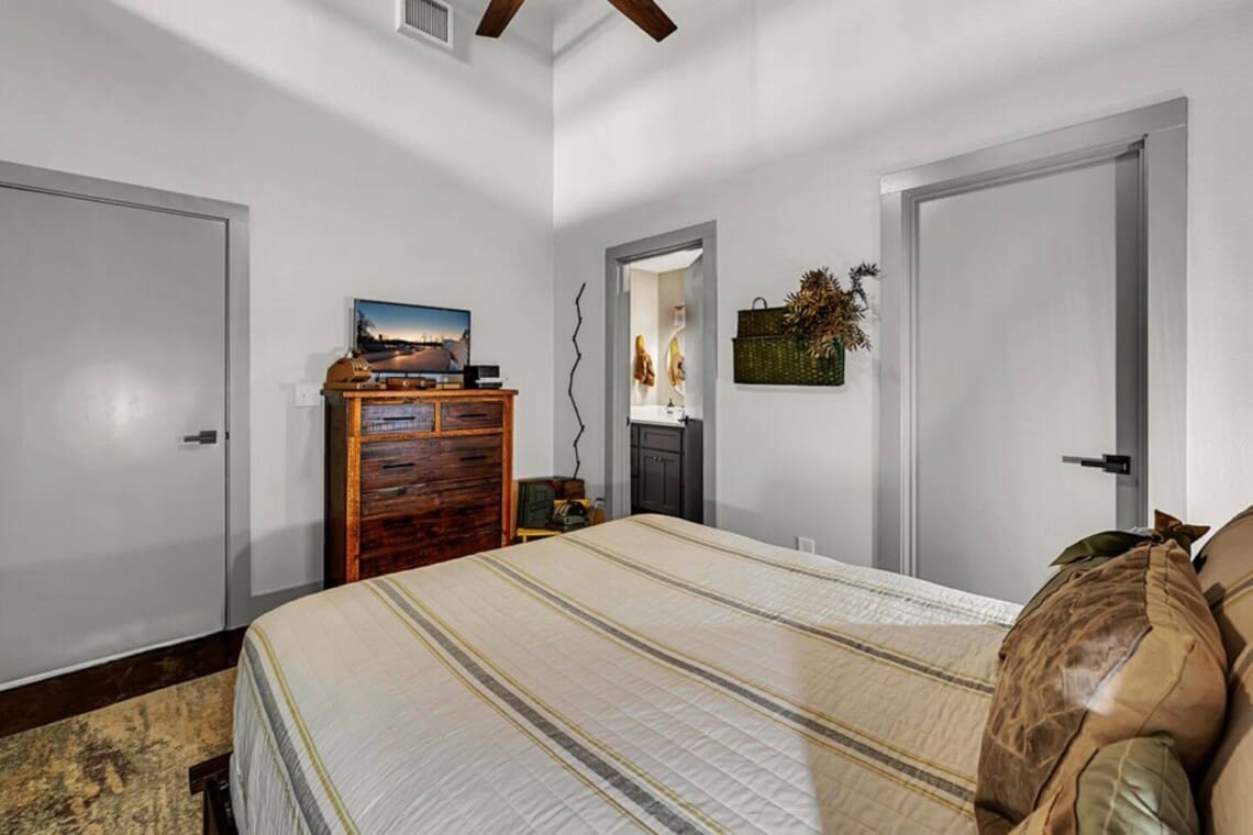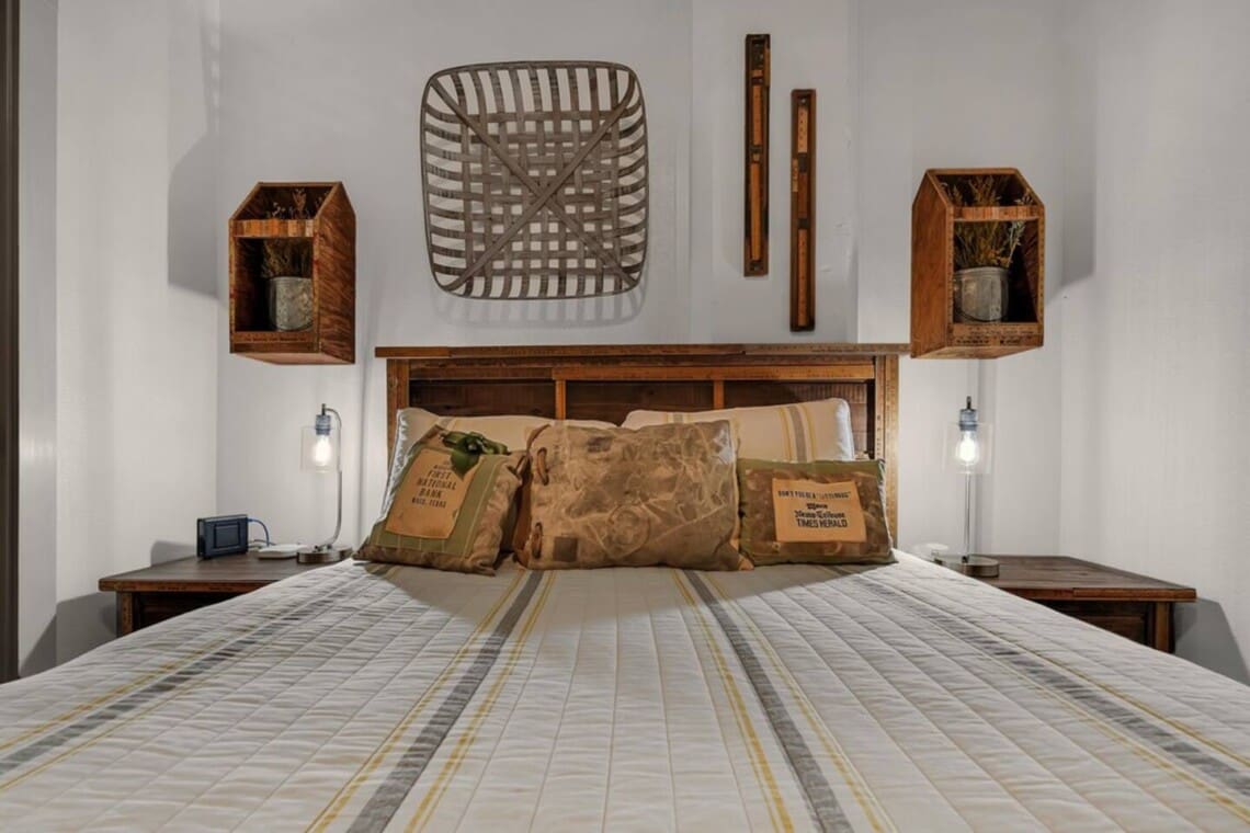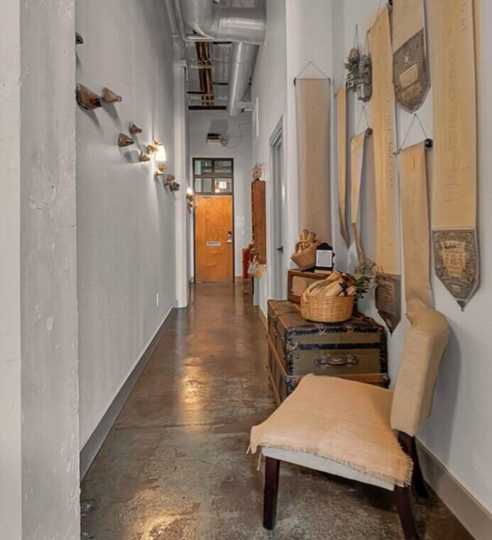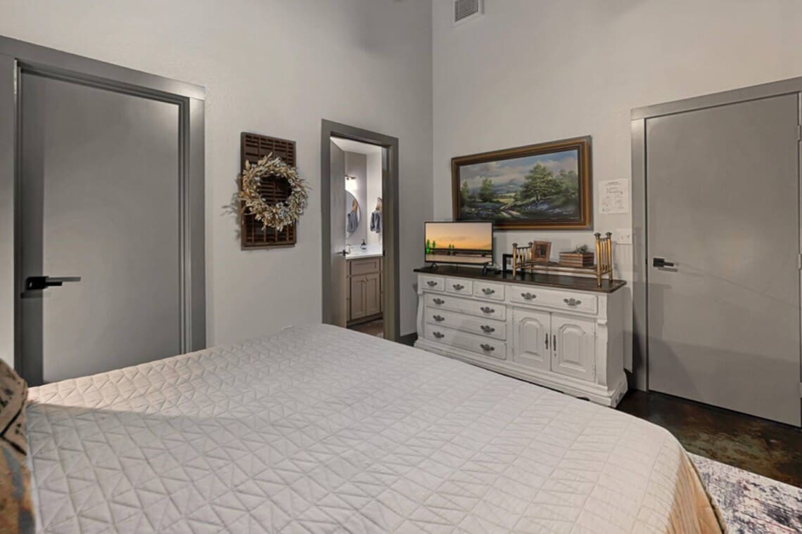 This first-floor luxury condo features two bedrooms, two bathrooms, and an open, industrial design with exposed brick, piping, and polished concrete floors. The decor is a mix of locally sourced vintage pieces and handcrafted details, creating a warm and inviting atmosphere. Whether you’re here for a Baylor event, a weekend getaway, or a Magnolia-inspired trip, this space is designed to make your stay truly special.