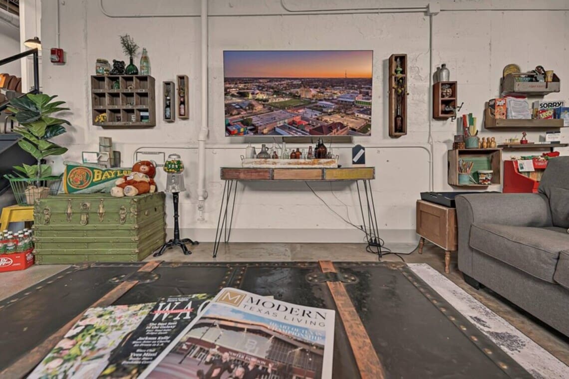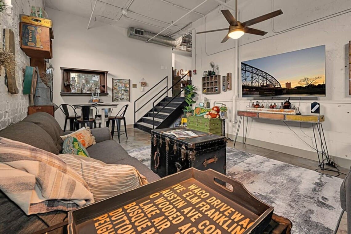 Stay in the heart of downtown Waco at this unforgettable vintage loft. Just steps from the Magnolia Silos, Baylor, and local shops, this historic Behrens Lofts condo blends industrial charm with modern luxury. Featuring exposed brick, custom decor, and free parking, Waco Memory Lane is a stay like no other. Discover a truly unique stay in the heart of downtown Waco. Just steps from the Magnolia Silos, Waco Riverfront, and charming downtown shops, this industrial-style loft offers an unforgettable experience. Located in the historic Behrens Lofts, this beautifully designed condo blends vintage character with modern comfort. Thoughtfully curated with custom-built pieces, unique decor, and even a hidden scavenger hunt, every corner of this space has a story to tell.