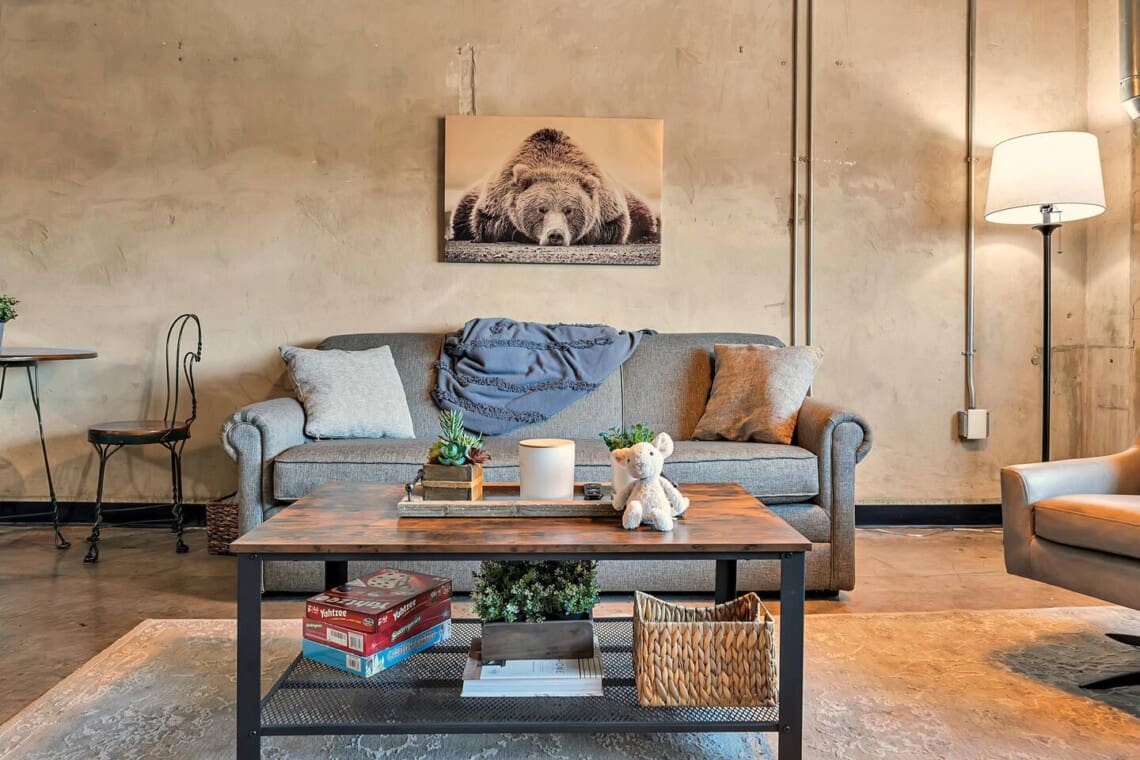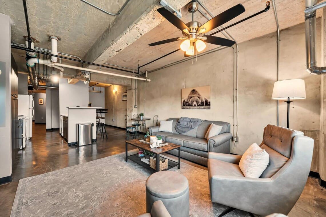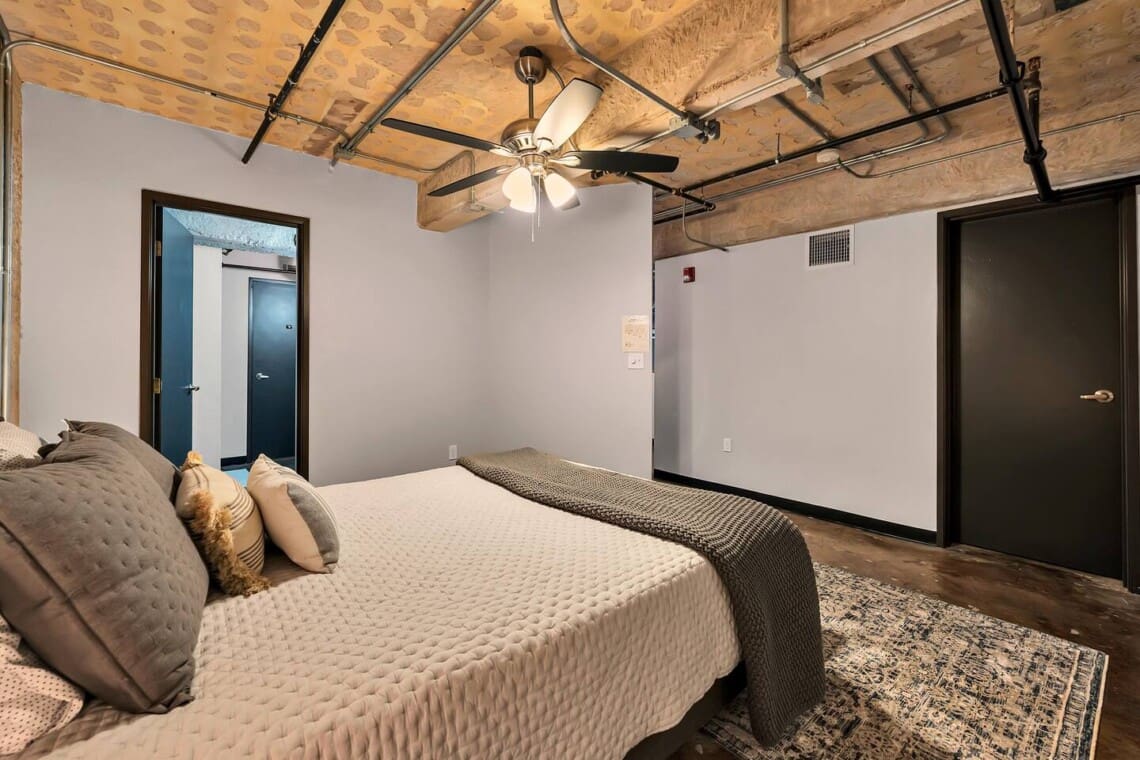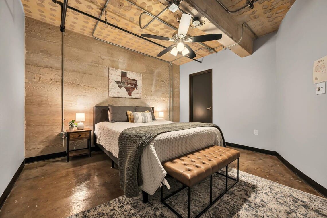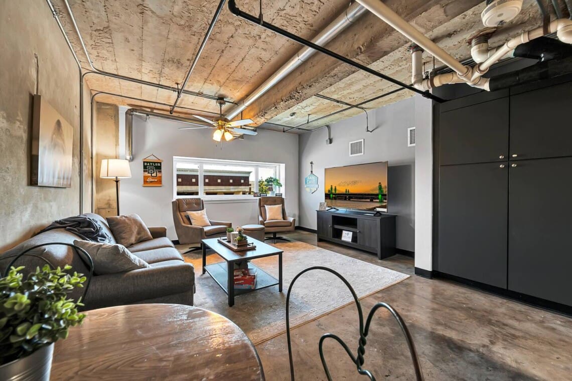 The Behrens Lofts are located in a historic downtown building originally completed in 1913 and later converted into loft residences. The building offers two elevators and a rear access ramp for easy entry. As with most downtown locations, guests may occasionally hear the nearby train or city activity. Long-term stays are welcome, and guests must be 21 or older to book.