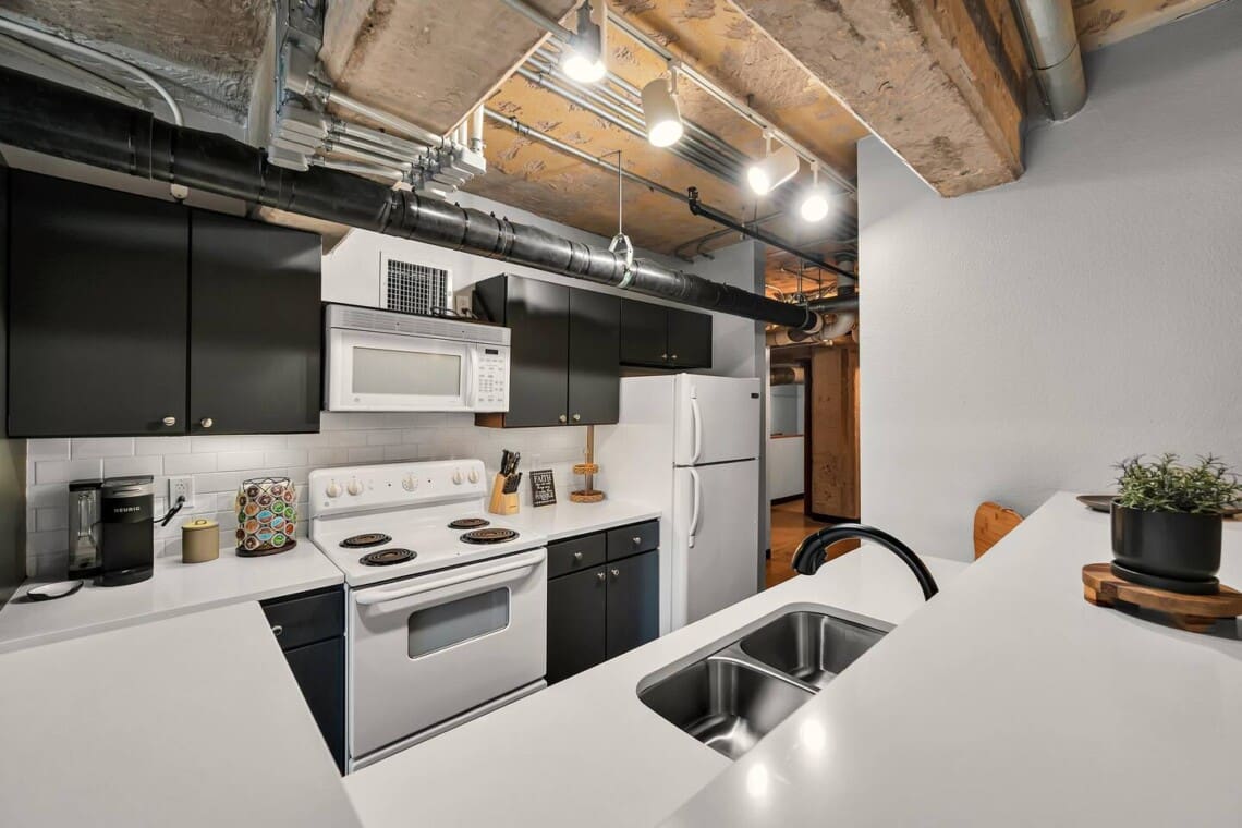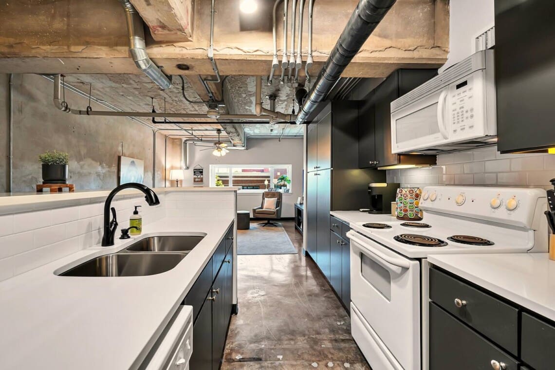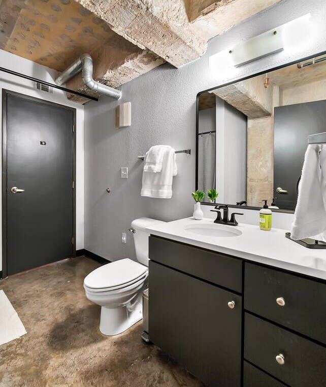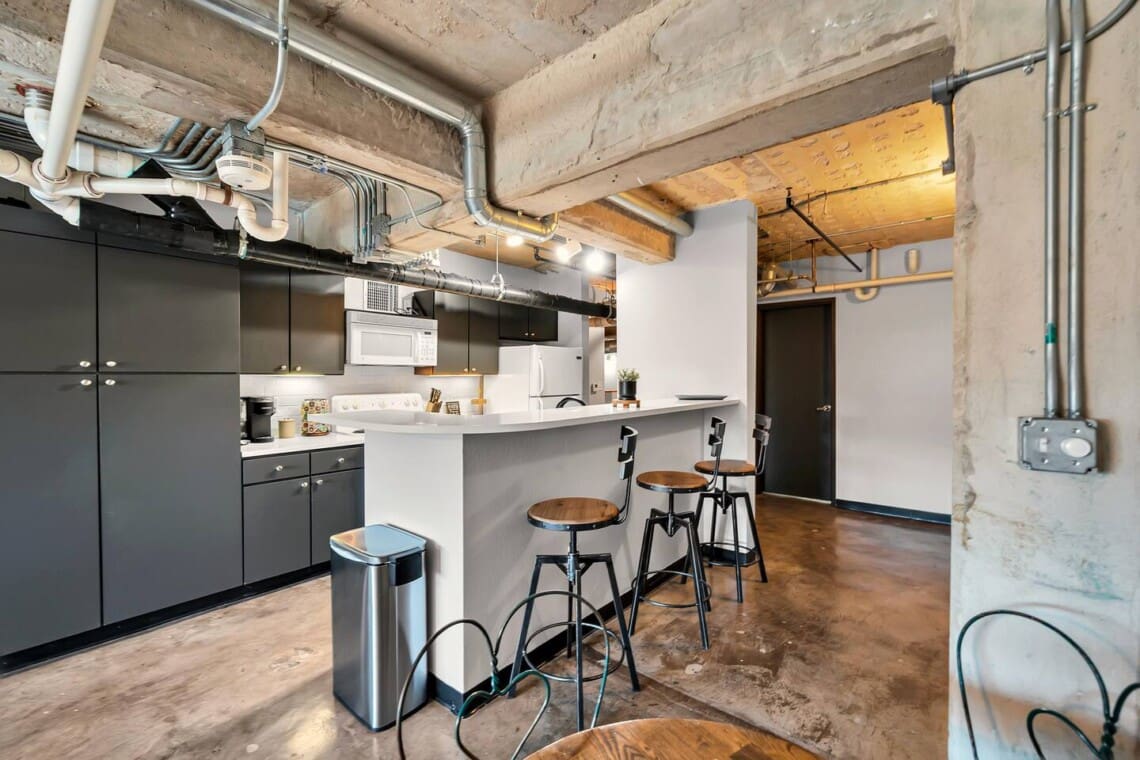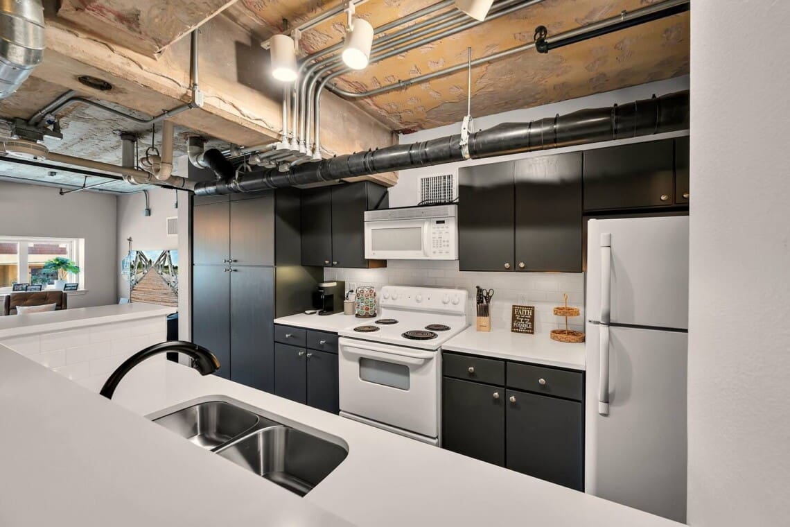 The Behrens Lofts are located in a historic downtown building originally completed in 1913 and later converted into loft residences. The building offers two elevators and a rear access ramp for easy entry. As with most downtown locations, guests may occasionally hear the nearby train or city activity. Long-term stays are welcome, and guests must be 21 or older to book.