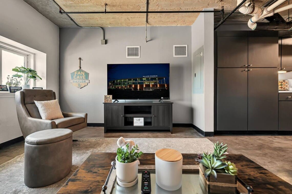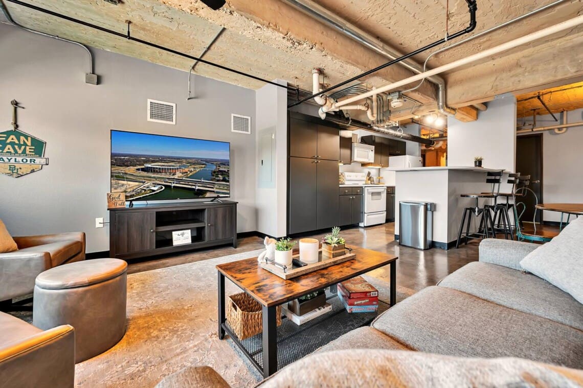 Stay in the heart of downtown Waco just steps from Magnolia Market, the Dr Pepper Museum, Baylor University, and McLane Stadium. This 1-bedroom, 1-bath condo sleeps four and features a pull-out sofa, fully stocked kitchen with Keurig Duo, smart TVs, elevator access, and walkable access to shops, dining, and attractions. Located in the historic Behrens Lofts, it’s a convenient and comfortable home base for exploring Waco. This condo is perfectly positioned in the heart of downtown Waco. You’re just three blocks from Magnolia Market, next door to the Dr Pepper Museum, six blocks from Foster Pavilion, and about 1.5 miles from Baylor University and McLane Stadium, which many guests walk to on game days. You’re also directly connected to Fabled Bookstore and Café, making morning coffee or an afternoon browse incredibly easy. Restaurants, shopping, and Waco’s most popular attractions are all within easy walking distance.