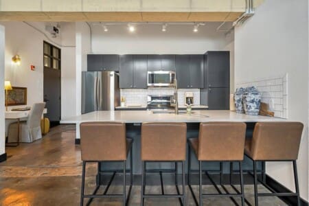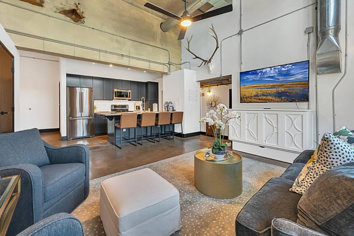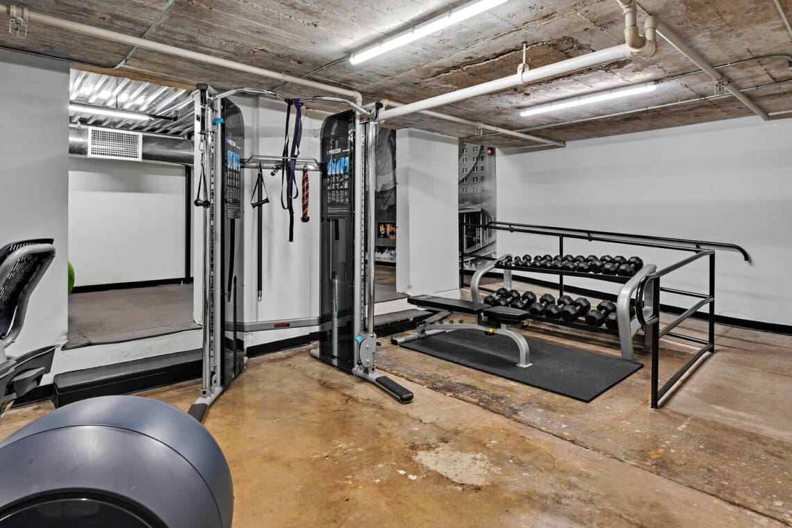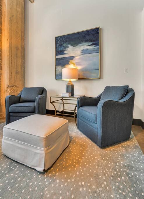 This spacious first-floor corner unit comfortably accommodates up to six guests with a king bedroom, a queen bedroom, and a queen Murphy bed. A fully equipped kitchen, cozy living room, and in-unit laundry ensure a comfortable and convenient stay. The warm, welcoming design creates a relaxing space to unwind after a day of exploring. Guests also have access to an on-site gym and enjoy fast WiFi, a large smart TV, and a secured building for added peace of mind.