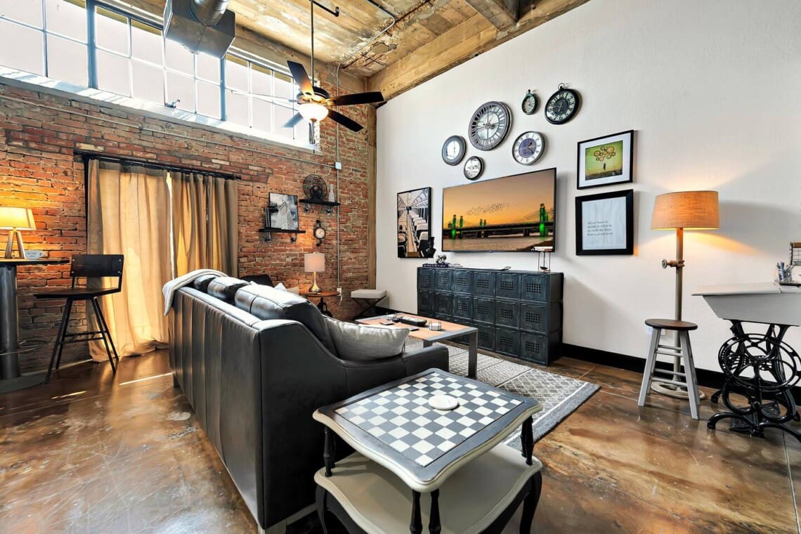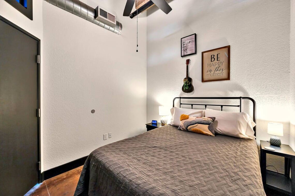 Ready to make your Waco getaway unforgettable? Timeout at 203 is the perfect launchpad for your adventure! Nestled in the historic Behrens Building and just a stone’s throw from the iconic Magnolia Silos, this sleek 2-bedroom, 2-bath condo combines modern style with ultimate convenience. Designed to comfortably host up to 4 guests, with designated parking included, it’s an ideal retreat for families, friends, or couples looking to relax and dive into everything Waco has to offer. Timeout at 203 is your ultimate escape, thoughtfully designed for relaxation and convenience. The open-concept living area is a welcoming space, featuring plush seating, a flat-screen TV, and large sliding doors that flood the room with natural light. The fully equipped kitchen boasts sleek modern appliances and ample counter space—ideal for whipping up a hearty meal or preparing snacks for your day’s adventures. With 2 comfortable bedrooms and 2 full bathrooms, this condo ensures everyone has the space to unwind after exploring all that Waco has to offer.