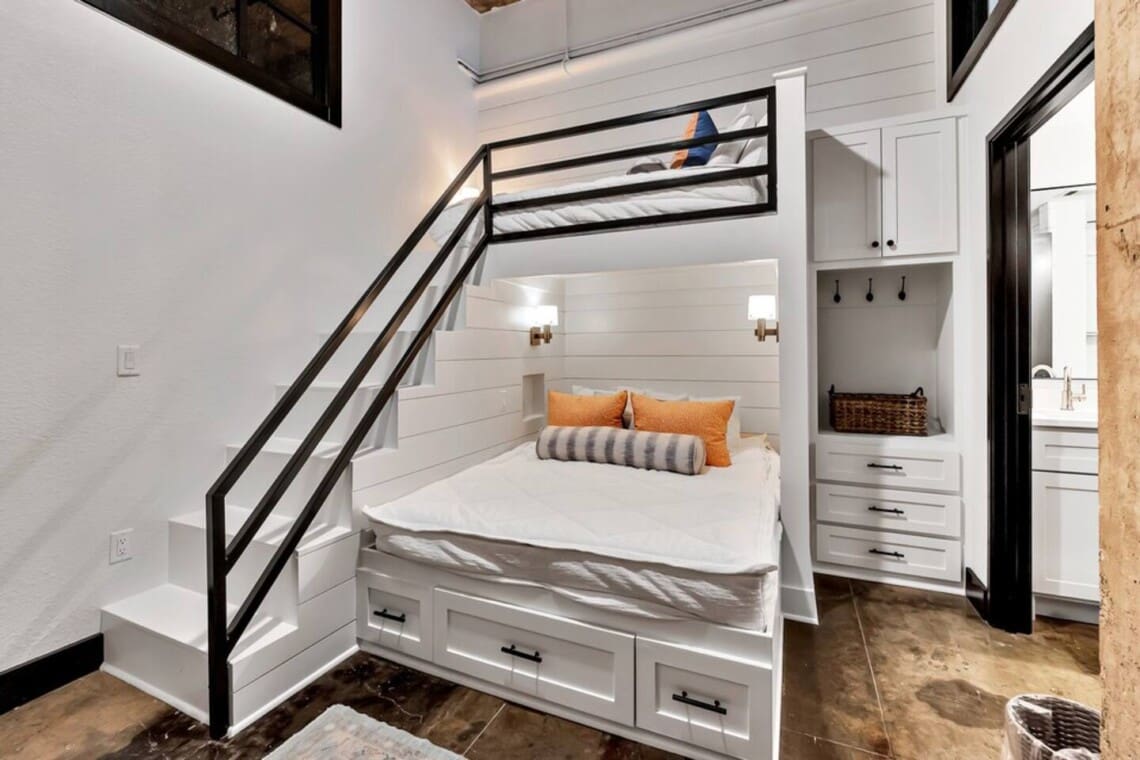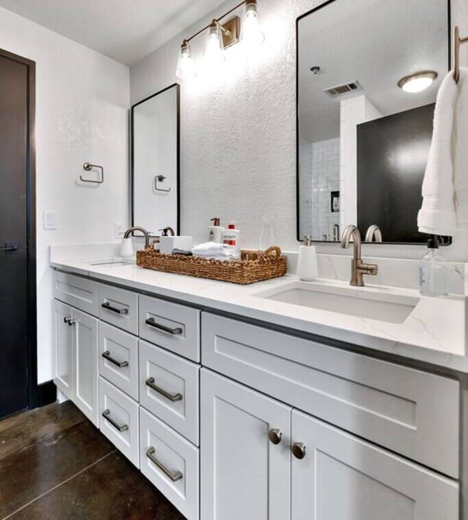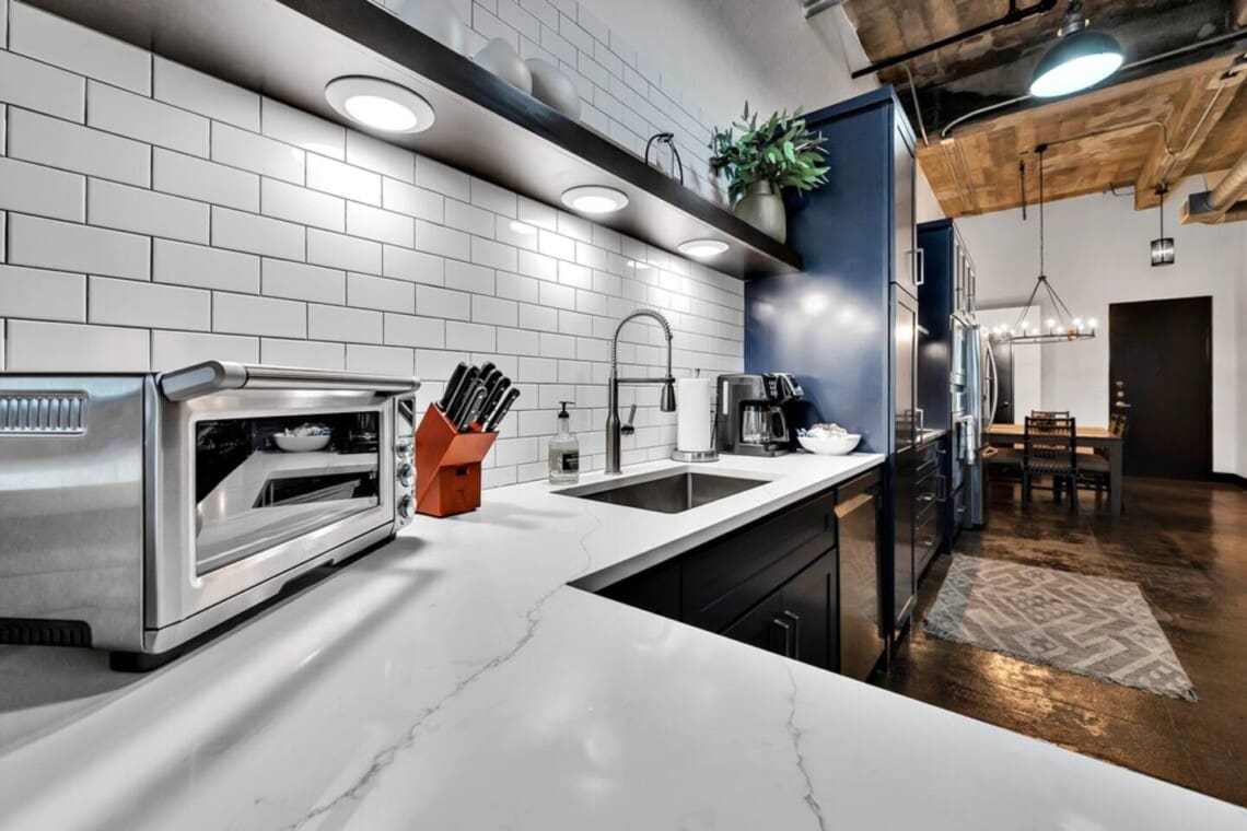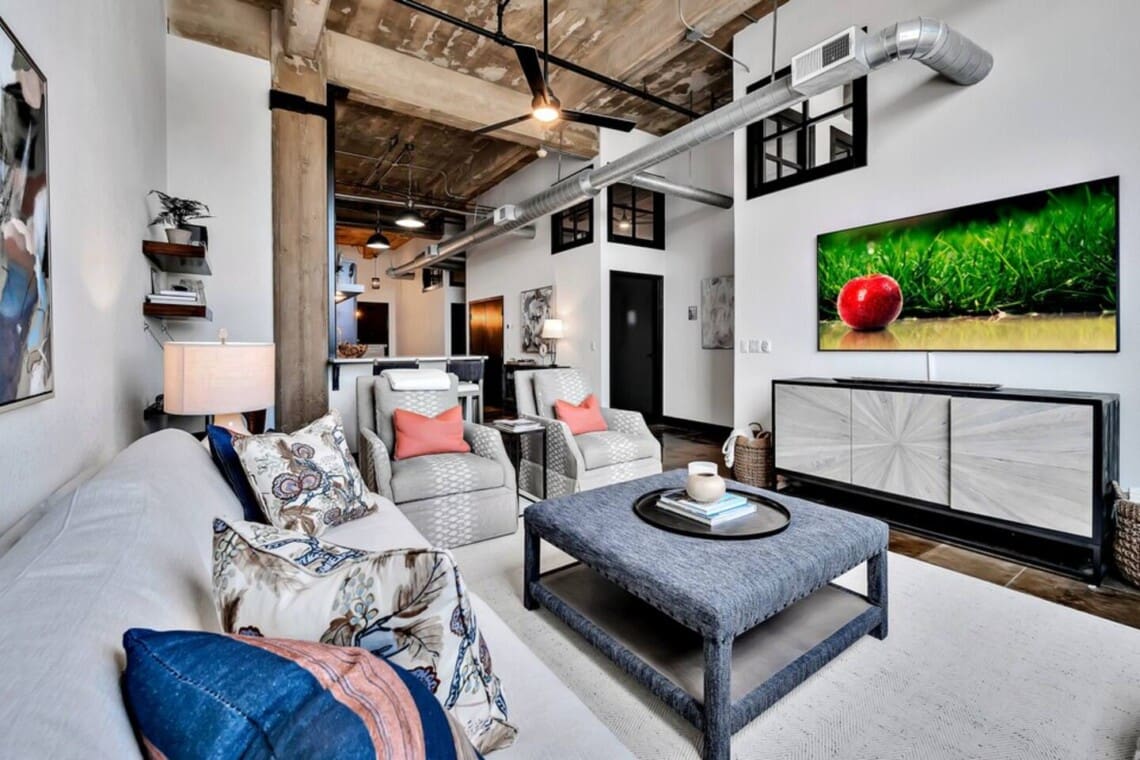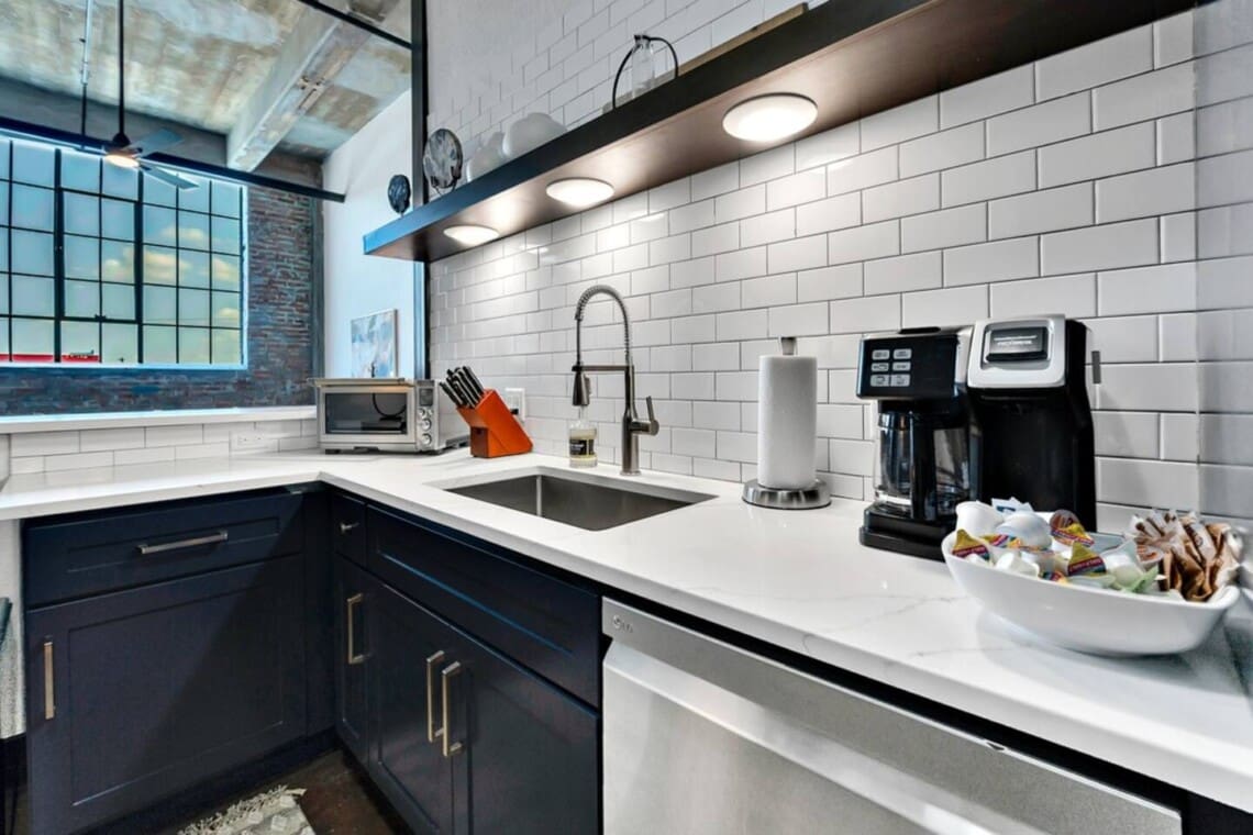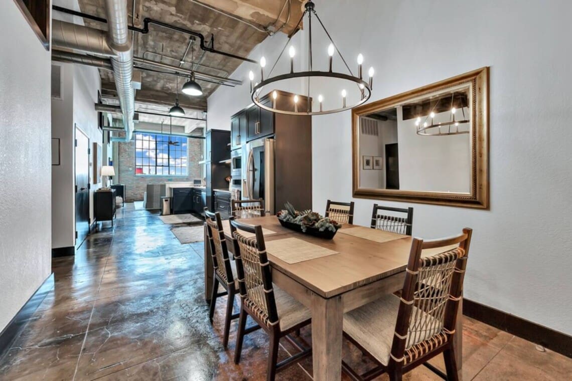 This industrial yet cozy condo features 3 bedrooms, 2 bathrooms, and 4 beds sleeping up to 7 guests. Each bedroom is stylishly decorated, with comfortable linens and thoughtful details throughout. Two of the beds feature adjustable heads, including a Tempur-Pedic and a Beautyrest Black, for added comfort. The bathrooms are spacious and stocked with personal amenities.