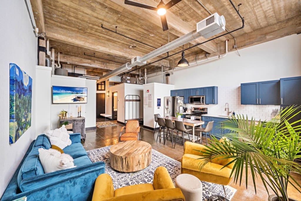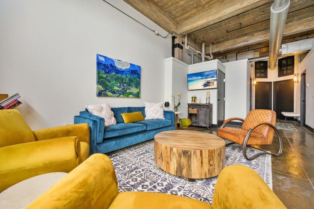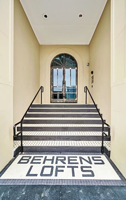 Our condo in the historic Behrens building, and just a short walk from Magnolia Market, Dr. Pepper Museum, Waco Suspension Bridge, and only a mile from Baylor’s campus. The building was built by the Clifton family for the Behrens Drug Company in 1913. It was a fire-proof, concrete structure constructed to provide ample working space for employees and to keep them safe. In the 1990s it was converted to loft living spaces.
