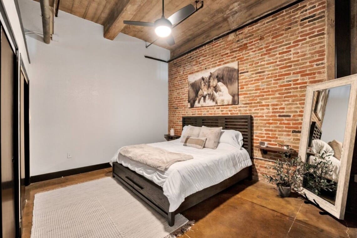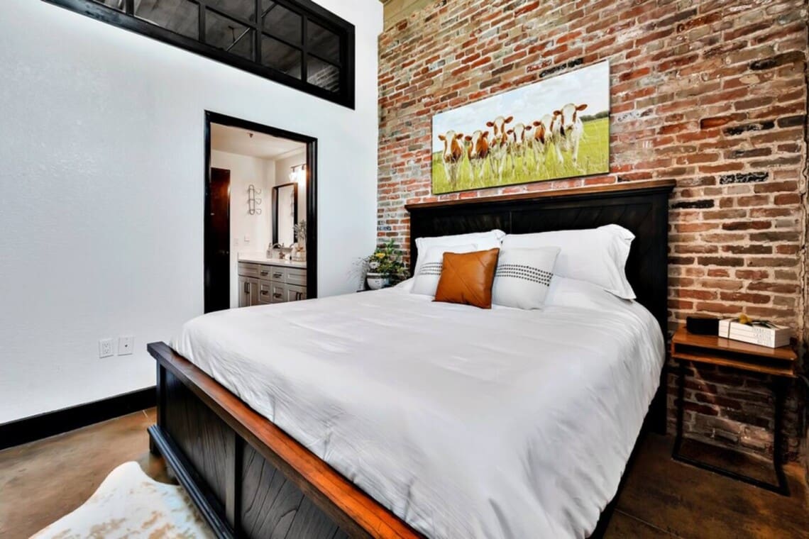 With its exposed brick walls, modern industrial design, and thoughtful details, this loft offers a comfortable and memorable place to unwind while enjoying everything Waco has to offer.