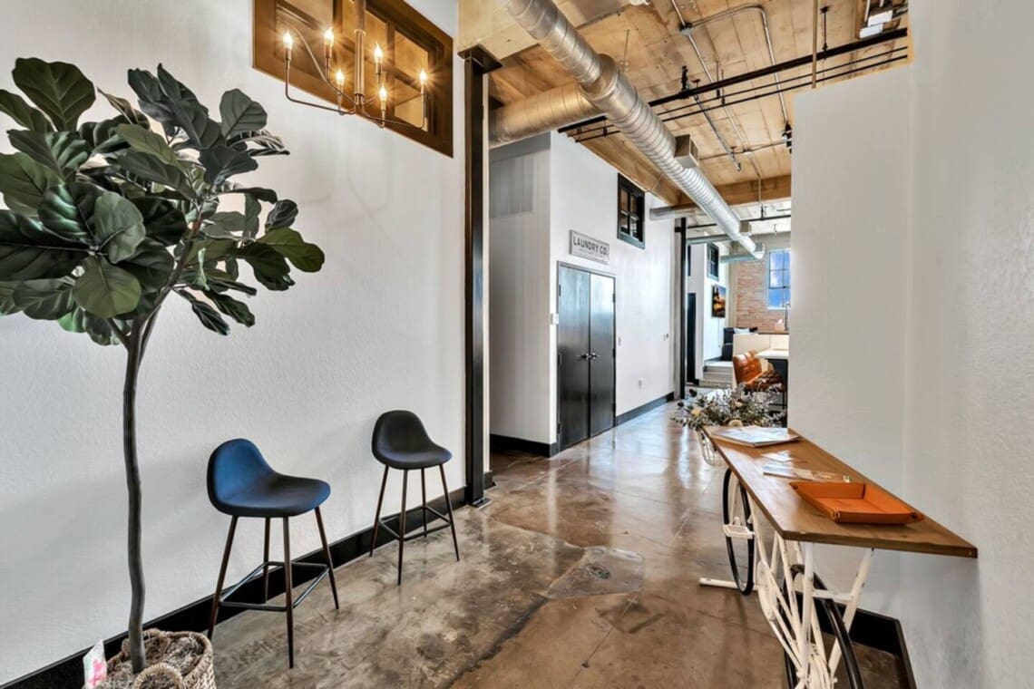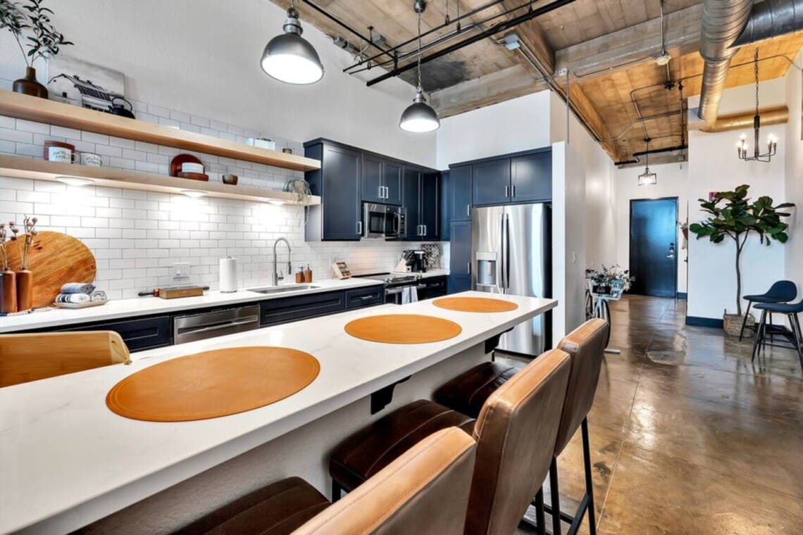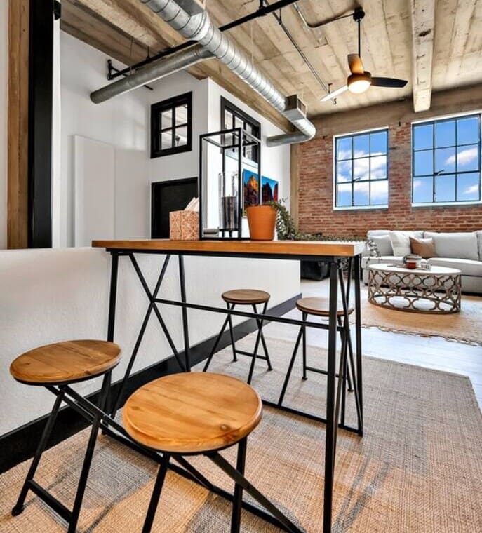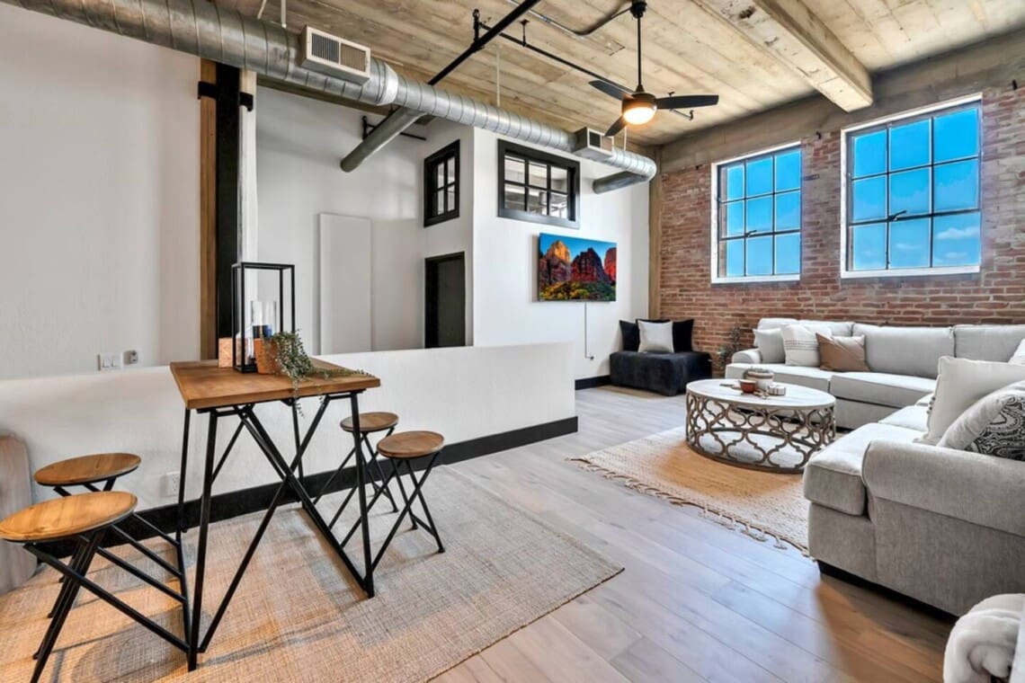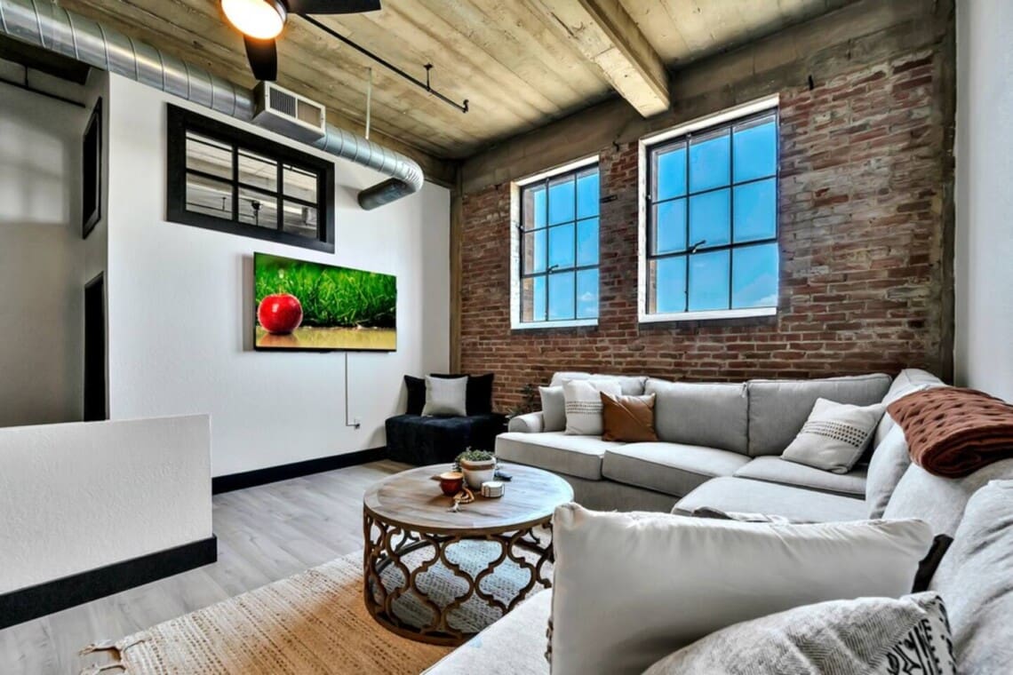 This 3-bedroom, 2-bath exposed brick loft blends industrial character with modern comfort. The open-concept layout creates a spacious and inviting environment for gathering, whether you’re relaxing after a day out or spending time with family and friends. The space features stylish furnishings, a cozy living area, and a clean, well-designed interior throughout.