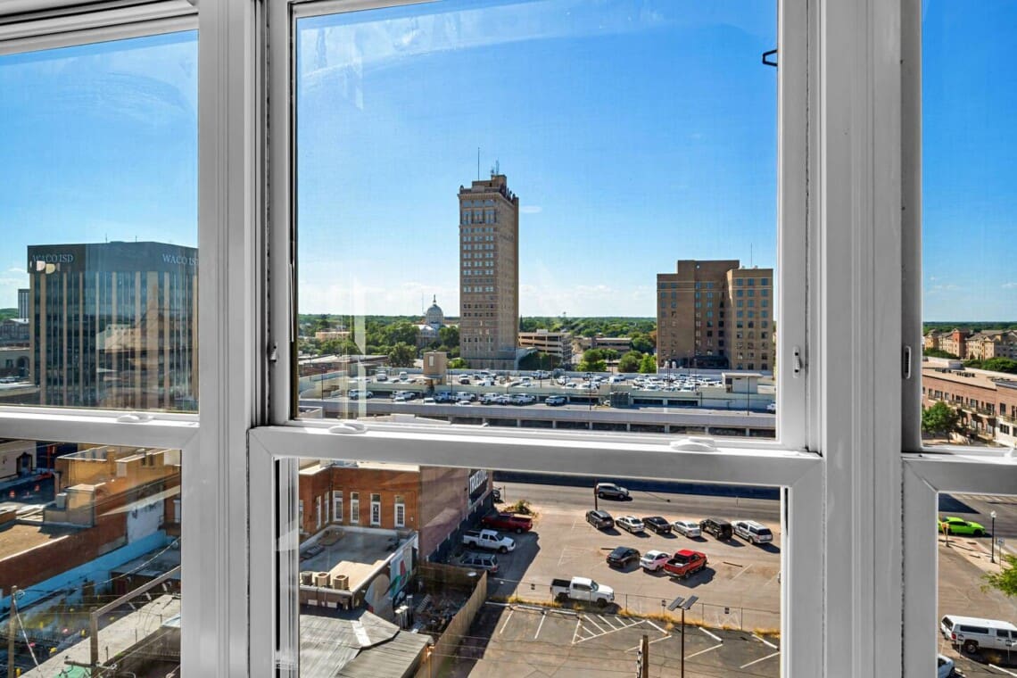 This top-floor corner condo in the Behrens Building offers a two-story loft layout with sweeping views of downtown Waco and the Silos. Enjoy a fully stocked kitchen, smart TVs in every room, comfortable beds, and access to the building fitness center. Walk to Magnolia Market, the Dr Pepper Museum, restaurants, and shops, with a Baylor shuttle just blocks away for easy game-day access. Take in sweeping downtown views from this top-floor corner condo located in the Behrens Building, one of Waco’s most sought-after addresses. This two-story loft-style condo sits right in the heart of downtown and is within walking distance of Magnolia Market, the Waco Suspension Bridge, the Dr Pepper Museum, and some of the city’s best restaurants and shops. Whether you’re exploring the city or enjoying a quiet night in, this space offers comfort, convenience, and a front-row seat to Waco.