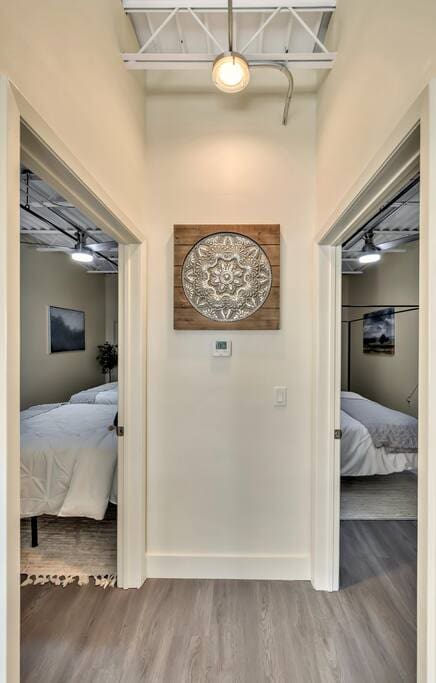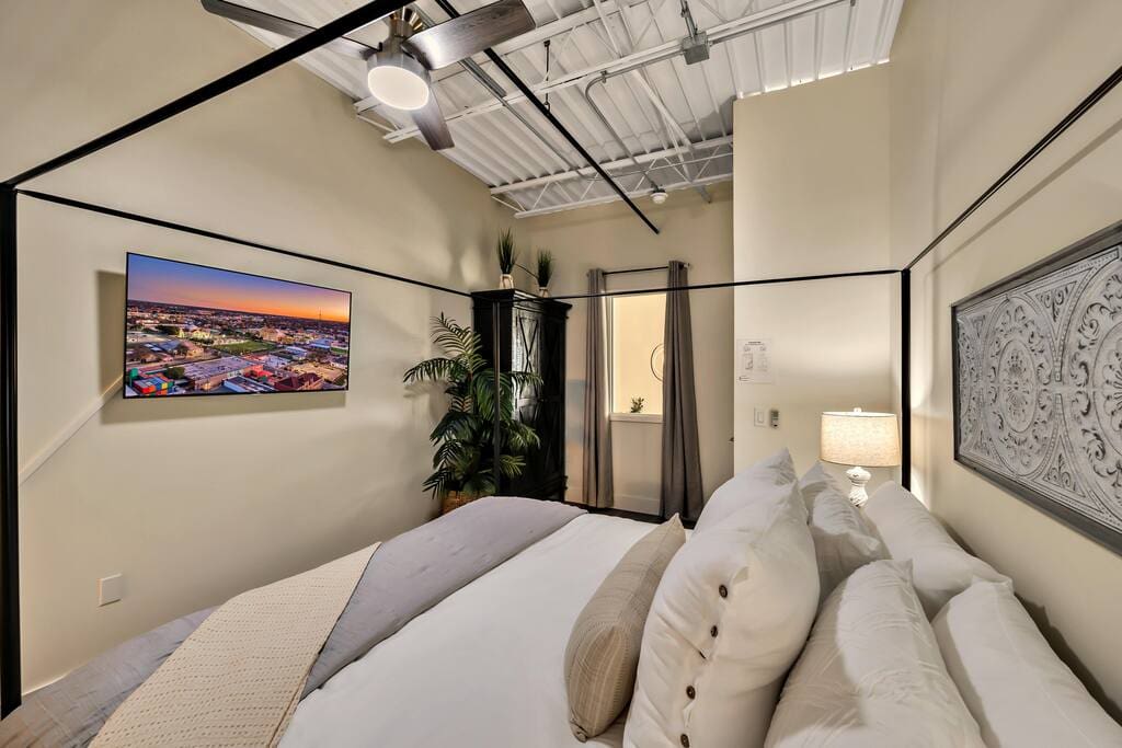 Sailor Bear is in the historic 100-year-old Behrens Building. This luxury penthouse loft condo seamlessly blends industrial charm with modern amenities, preserving its heritage while providing a unique stay unlike any other. Experience the best of Waco from the comfort of Sailor Bear Hideaway, where timeless elegance meets contemporary convenience.