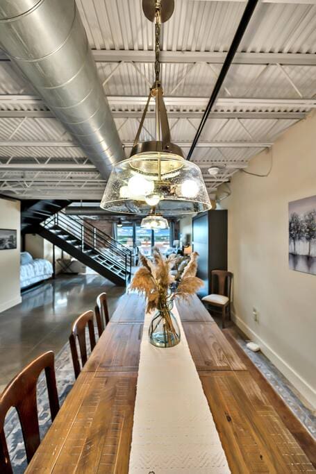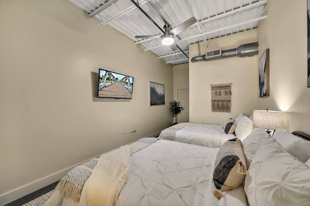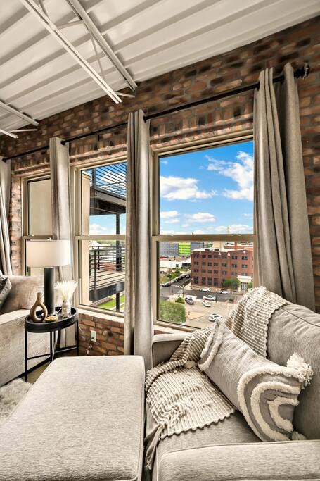 Enjoy the spaciousness and the views. Almost 2000 square feet on two floors, a farmhouse dining table that seats 10, a fully stocked kitchen, and a large den with a 65-inch QLED Roku TV and Bose soundbar. All powered by high speed (1200Mbps) internet service and whole home WiFi. And beautiful views of the Silos and downtown Waco and its iconic architecture.