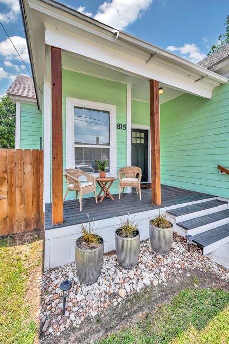 The Cozy Mint Cottage is a beautifully renovated 3-bedroom, 3-bath home in one of Waco’s most convenient locations—just minutes from Magnolia, Baylor, and Downtown. With private bathrooms for every bedroom, a fully stocked kitchen, open-concept living and dining spaces, and a large fenced backyard with gated parking and a furnished deck, this home offers comfort, privacy, and space to unwind. Stylish, peaceful, and close to it all—your perfect Waco stay starts here.