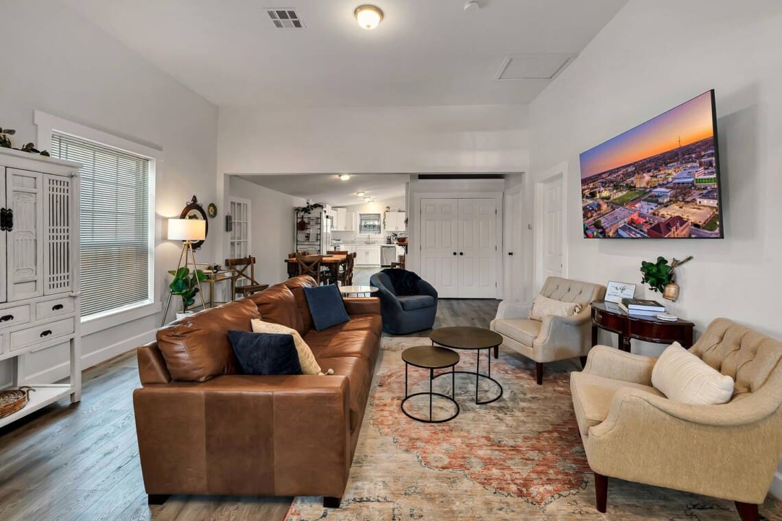 The Cozy Mint Cottage is a beautifully renovated 3-bedroom, 3-bath home in one of Waco’s most convenient locations—just minutes from Magnolia, Baylor, and Downtown. With private bathrooms for every bedroom, a fully stocked kitchen, open-concept living and dining spaces, and a large fenced backyard with gated parking and a furnished deck, this home offers comfort, privacy, and space to unwind. Stylish, peaceful, and close to it all—your perfect Waco stay starts here. Welcome to the Cozy Mint Cottage—your fresh, stylish escape in one of Waco’s best locations. Just minutes from Magnolia, Baylor University, McLane Stadium, Foster Pavilion, the Silos, and the heart of Downtown, this centrally located gem makes it easy to explore the best of Waco without the hassle of a long drive. Whether you’re here for game day, a Magnolia pilgrimage, or a relaxing getaway, this is the perfect home base.