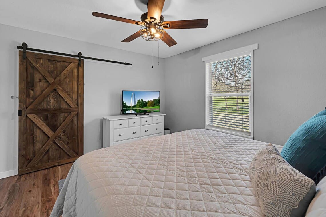 Outside, the fun really begins. You’ll find a huge deck, porch swings, string lights, and amazing country views. Enjoy outdoor meals at the dining table, cook with the charcoal grill or smoker, and gather around the firepit when the sun goes down. A volleyball net, cornhole, and wide-open yard make this space perfect for both play and peace.