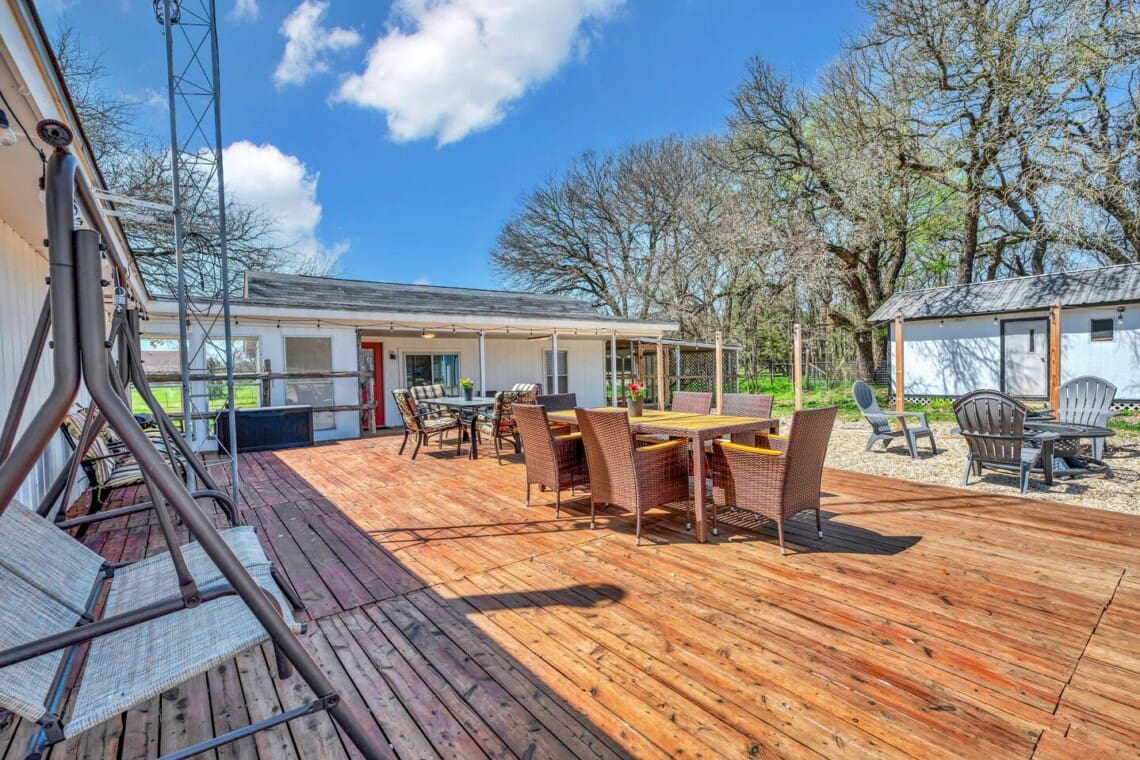 Escape to Heritage Hideaway—just 15 minutes from Waco, this private retreat sleeps 14 across a spacious main house and retro-style guest house. Enjoy wide open spaces, a huge deck, firepit, volleyball net, and peaceful country views. Perfect for family getaways, game weekends, or group gatherings with room to spread out and unwind. Pets welcome with a refundable pet fee.