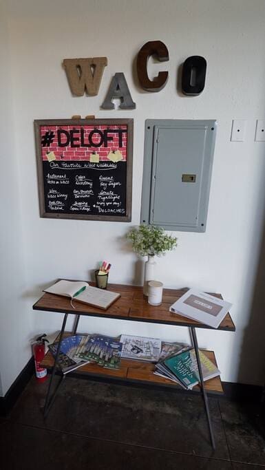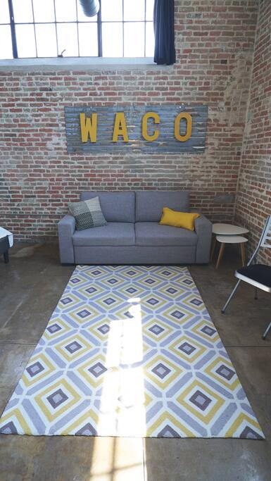 Amazing one bedroom loft in a historic warehouse in the heart of downtown Waco. Within a couple of blocks of Magnolia Market and the Silos, the dining, retail and entertainment areas of downtown Waco, and next door to the Dr. Pepper Museum and the new Fabled Bookstore and Cafe. Baylor University is a 10-15 minute walk, and the shuttle pick-up to McLane Stadium for home football games is 2 blocks away. Dedicated and street parking, but you may not need to drive at all during your visit to Waco!