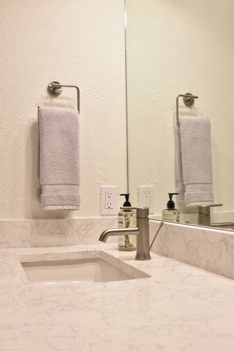 NOTE: Although the location can’t be beat, the great location is in downtown Waco, like all other rentals and hotels within walking distance of Magnolia and downtown, and occasionally comes with a little more noise at night than there would be in the suburbs, including an occasional train whistle in the middle of the night and music from neighboring establishments on the weekend. We have provided a sound machine in the bedroom and disposable earplugs for your use!