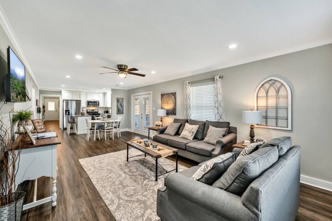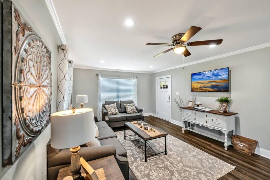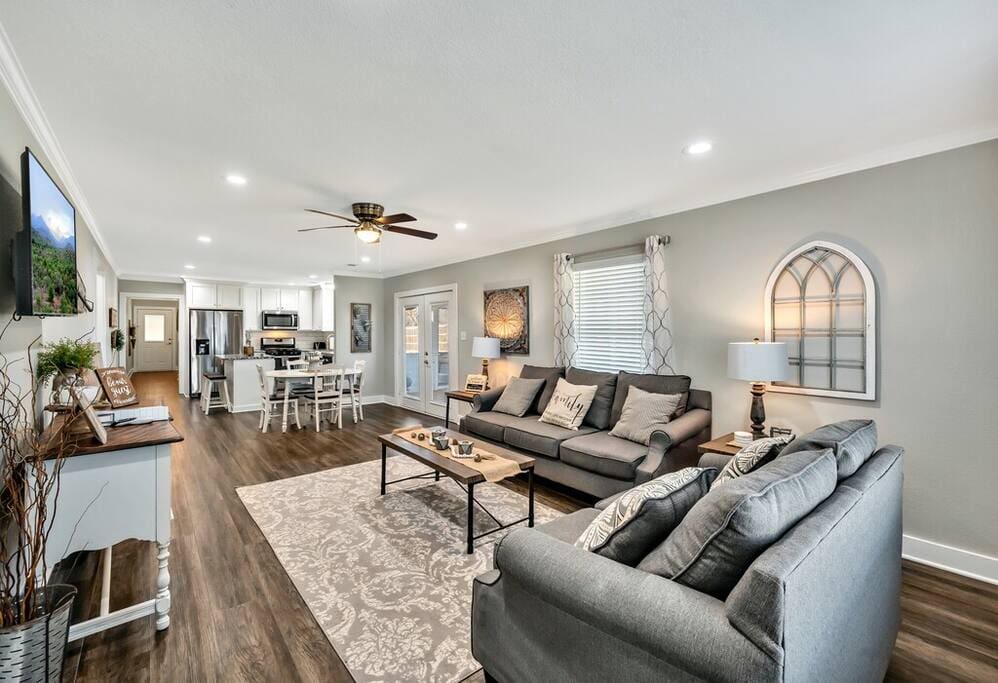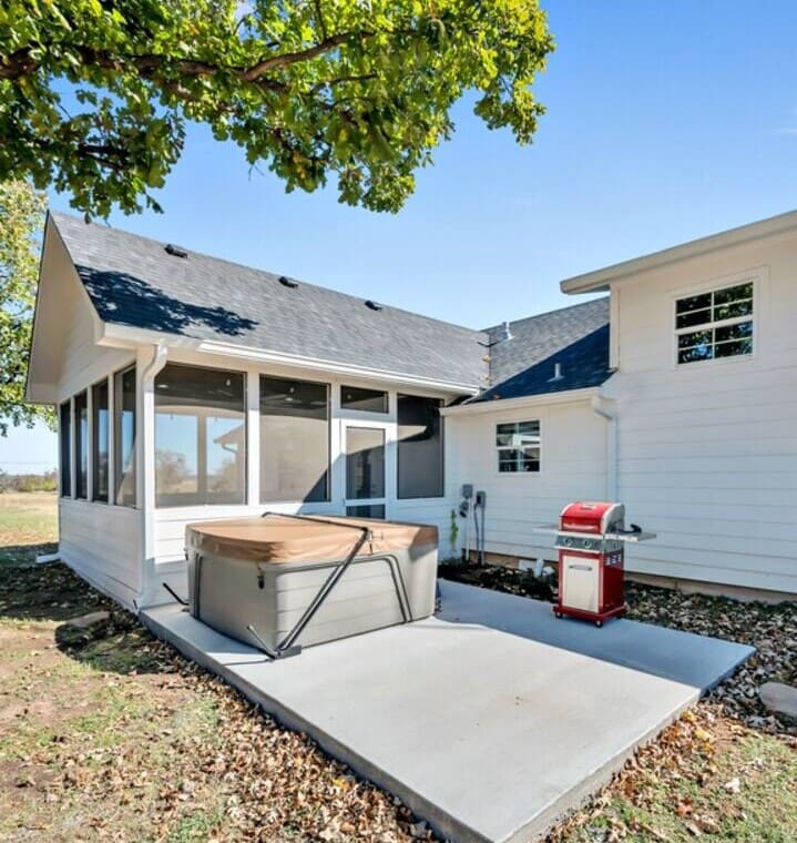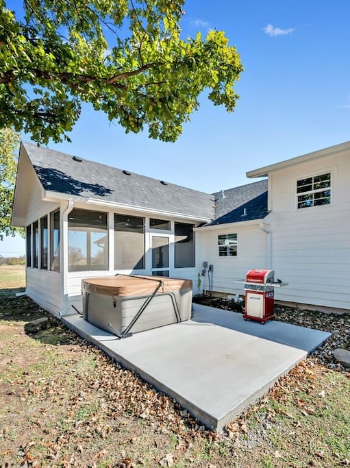 Enjoy a tranquil setting in this modern farmhouse for a family gathering, a celebration or some relaxation. Completely updated but still quaint and cute, this lodging is the perfect getaway. Complete with a screened-in porch, an upstairs game room for the kids (or big kids), a four person spa installed November 2020 and plenty of outdoor area, this place can and will accommodate.