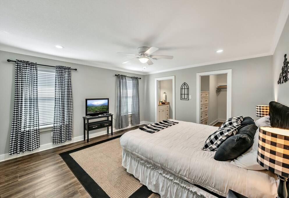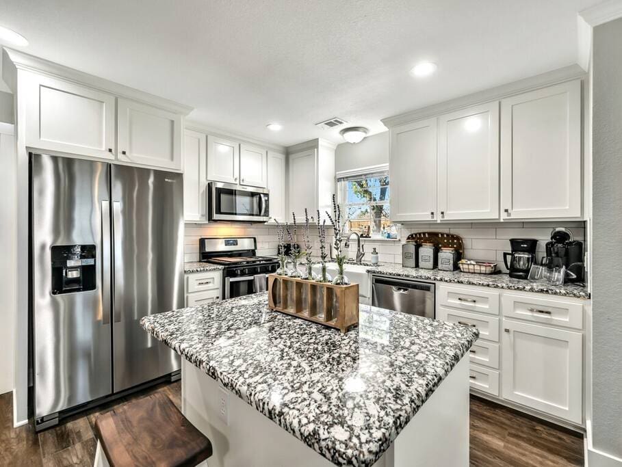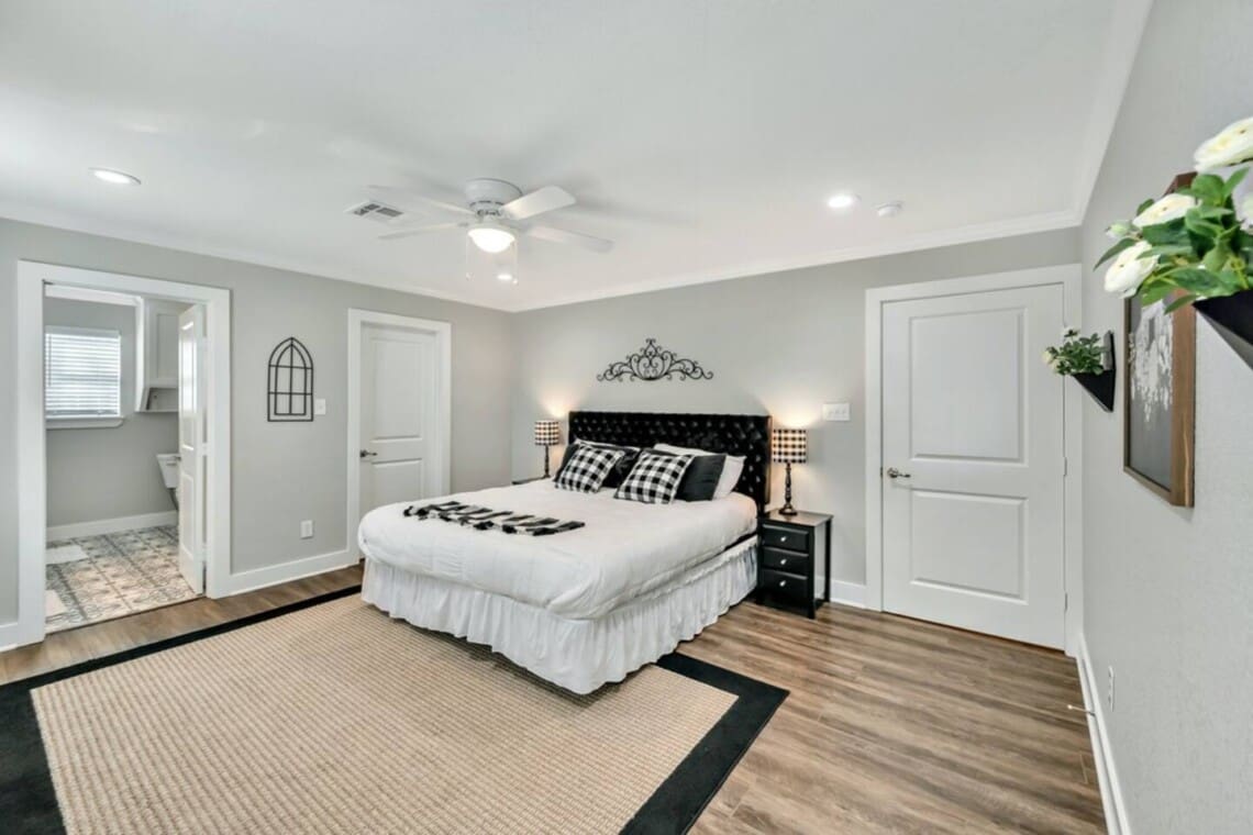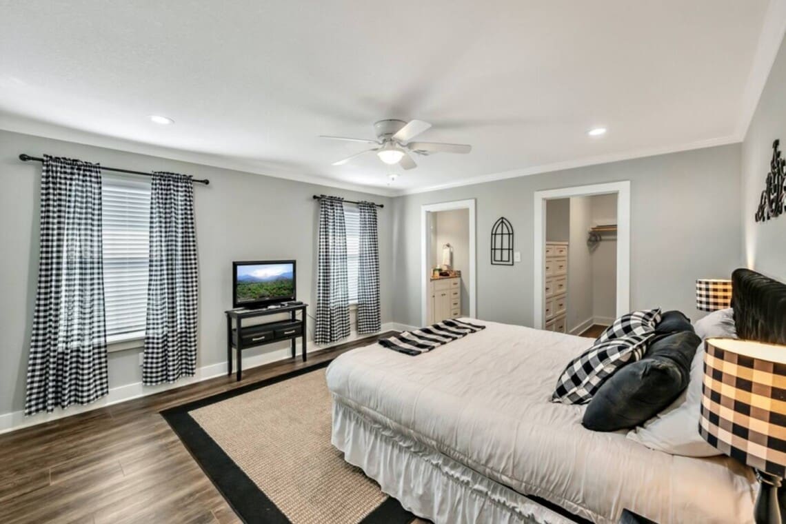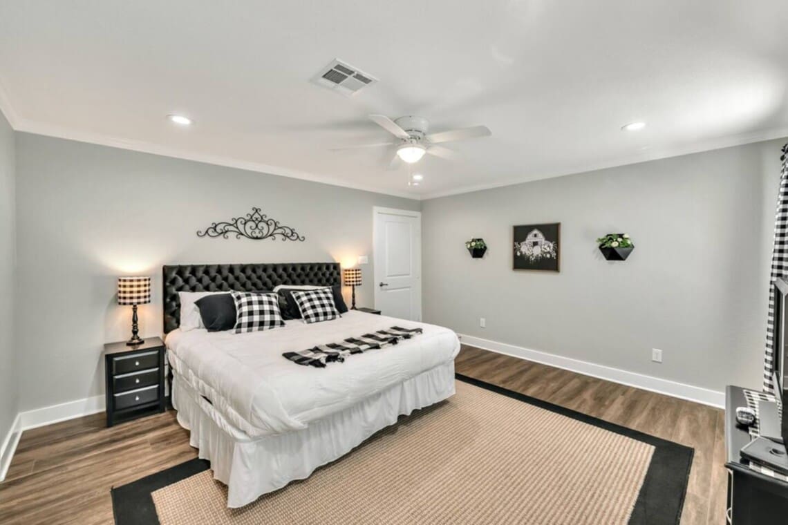 Upon arrival, you and your guests will enjoy deciding which bedroom fits you best. Will it be the master suite decorated with the popular buffalo check details or the cozy front bedroom complete with a sleigh bed and delicate details? Or maybe you will want to stay in the popular Waco-room with accents from our town’s past and present.