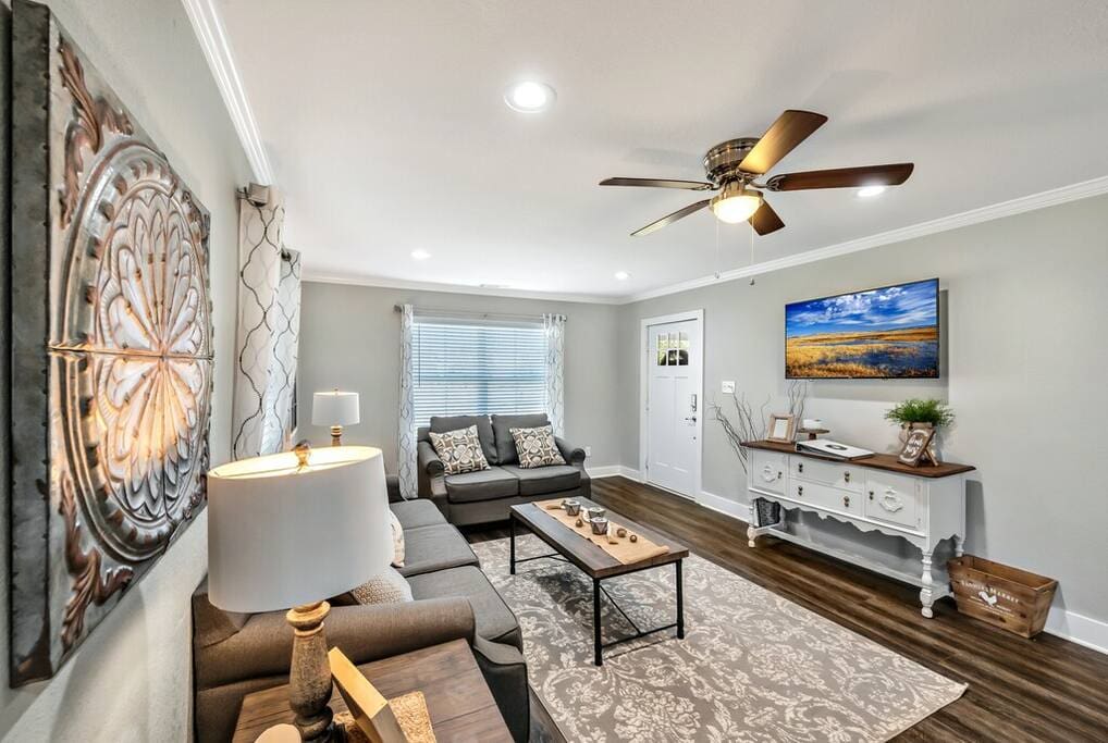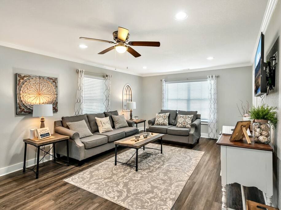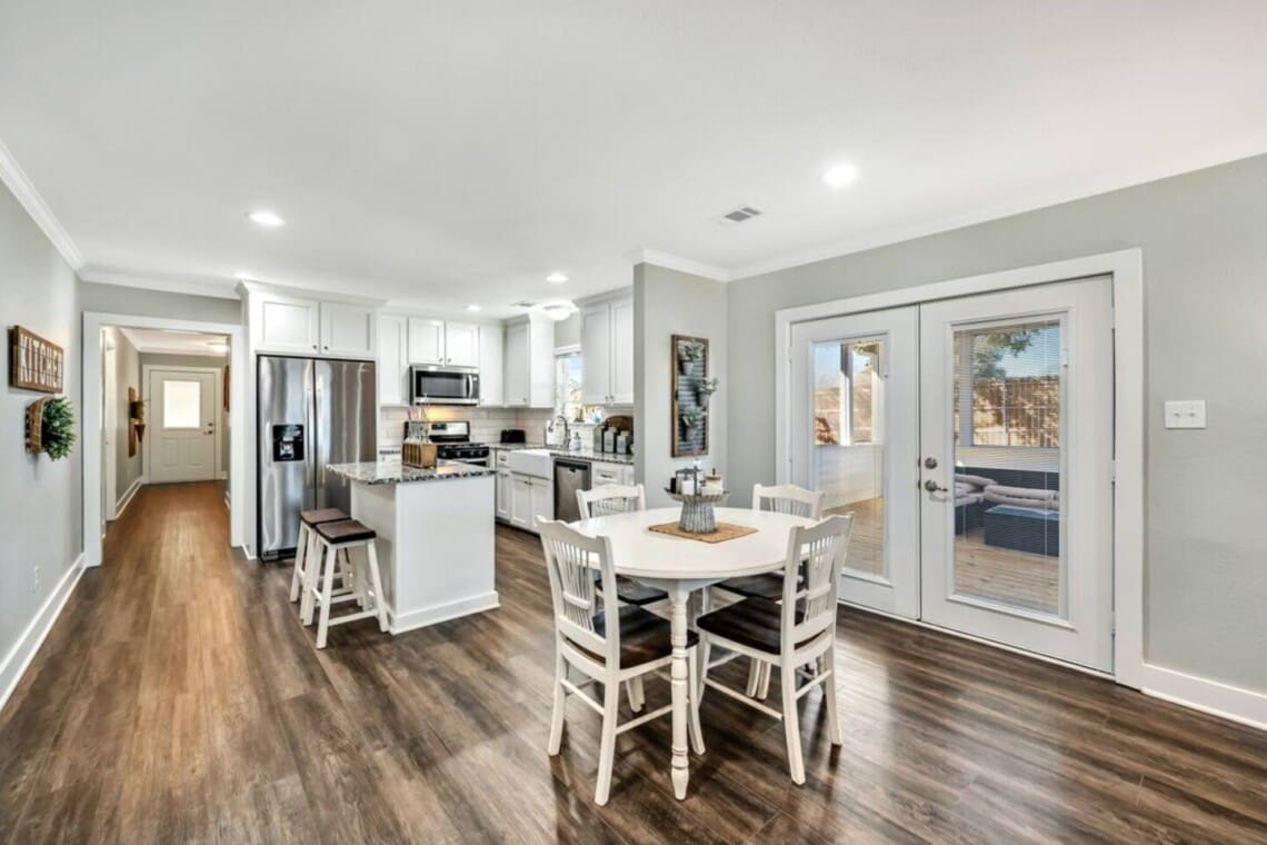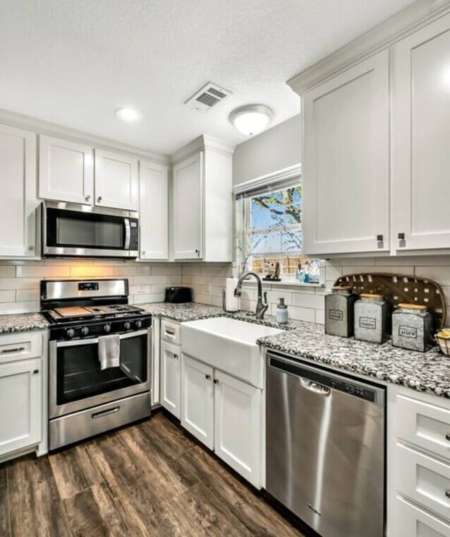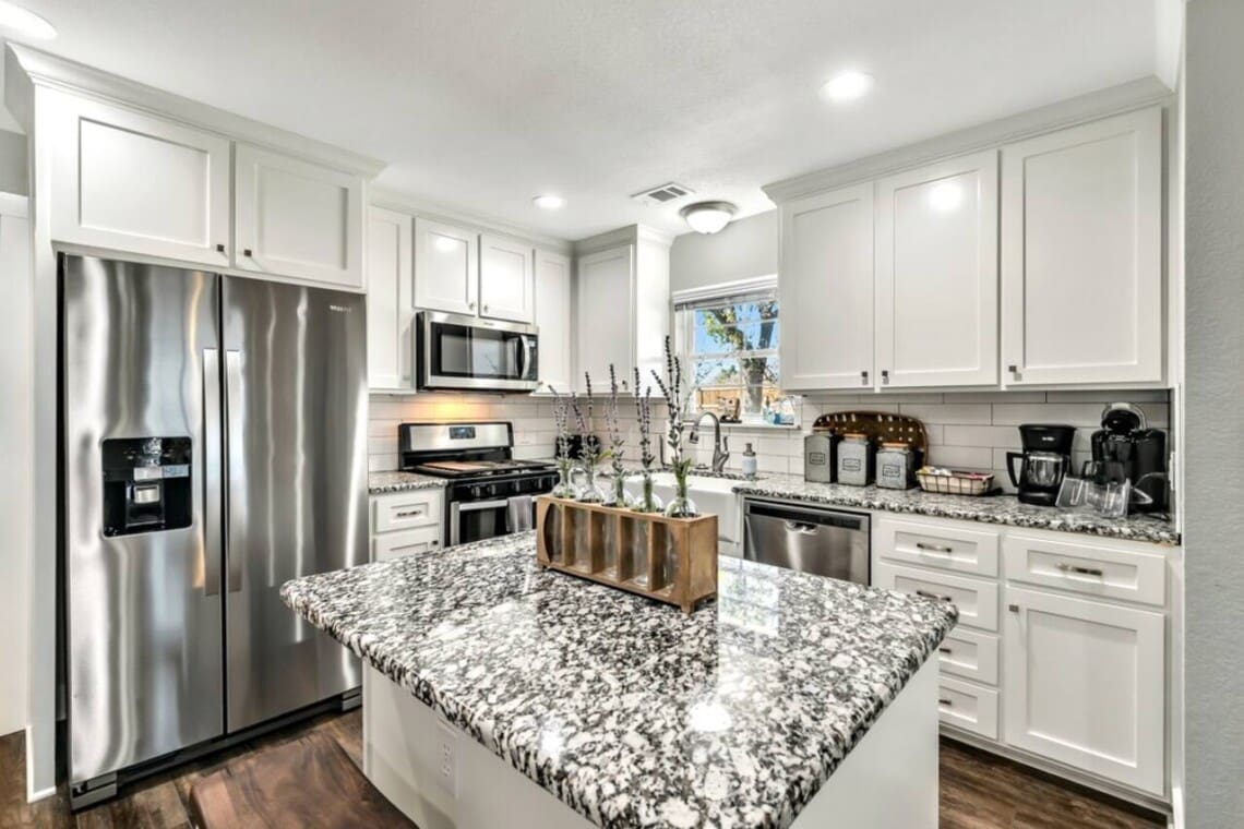 Upon arrival, you and your guests will enjoy deciding which bedroom fits you best. Will it be the master suite decorated with the popular buffalo check details or the cozy front bedroom complete with a sleigh bed and delicate details? Or maybe you will want to stay in the popular Waco-room with accents from our town’s past and present.
