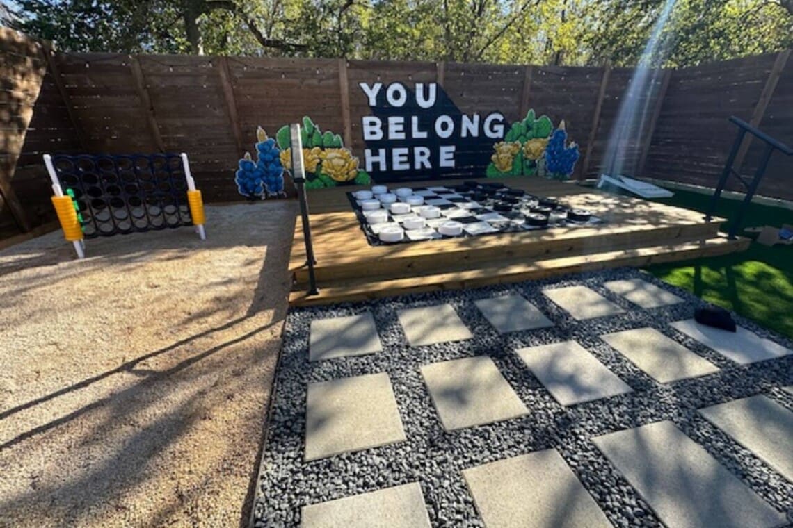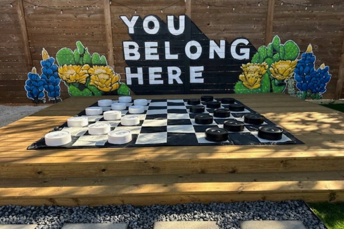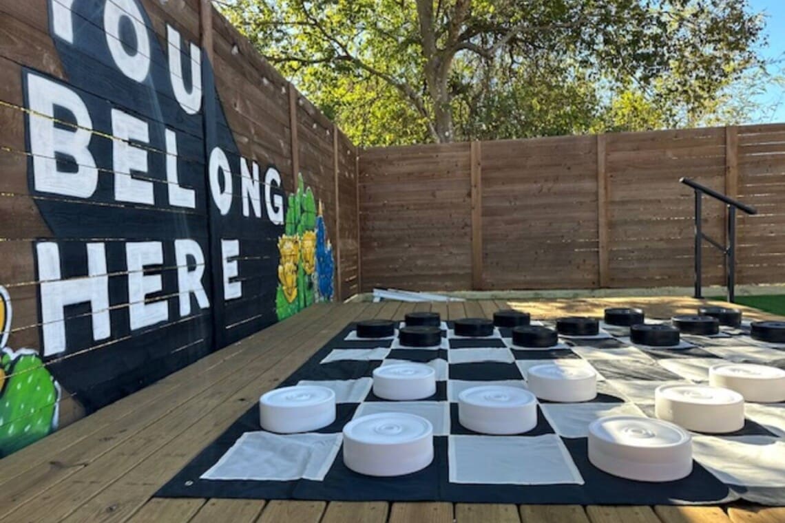 The backyard is spectacular! Bursting with activities for everyone, you may just have trouble leaving! So much to do & so much fun to be had. A custom mural, outdoor games & seating… this is no ordinary vacation rental! Keep everyone entertained & find the relaxation you’re looking for.