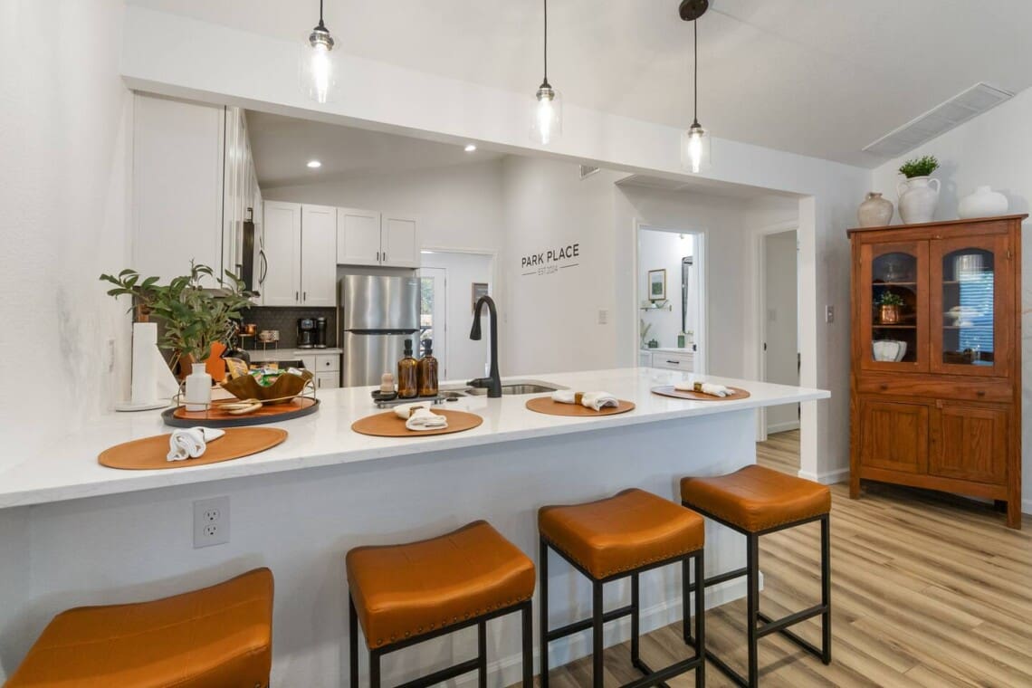 Park Place is centrally located near Downtown Bastrop, walking distance to Bastrop Convention Center, movie theater and bowling lanes. Enjoy evenings in downtown Bastrop or spend your time in the beautiful backyard of Park Place! Near Bastrop’s largest park, Fisherman’s Park, which has basketball, volleyball, bbq grills and beautiful riverside trail along the Colorado River and access to kayaking & fishing. Park Place is also conveniently located a .5 mile from Bucee’s, everyone’s favorite! The home: