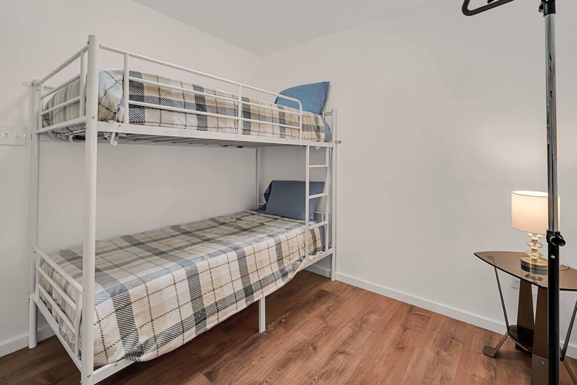 Third Bedroom: Twin-over-twin bunk bed, ideal for kids or extra guests