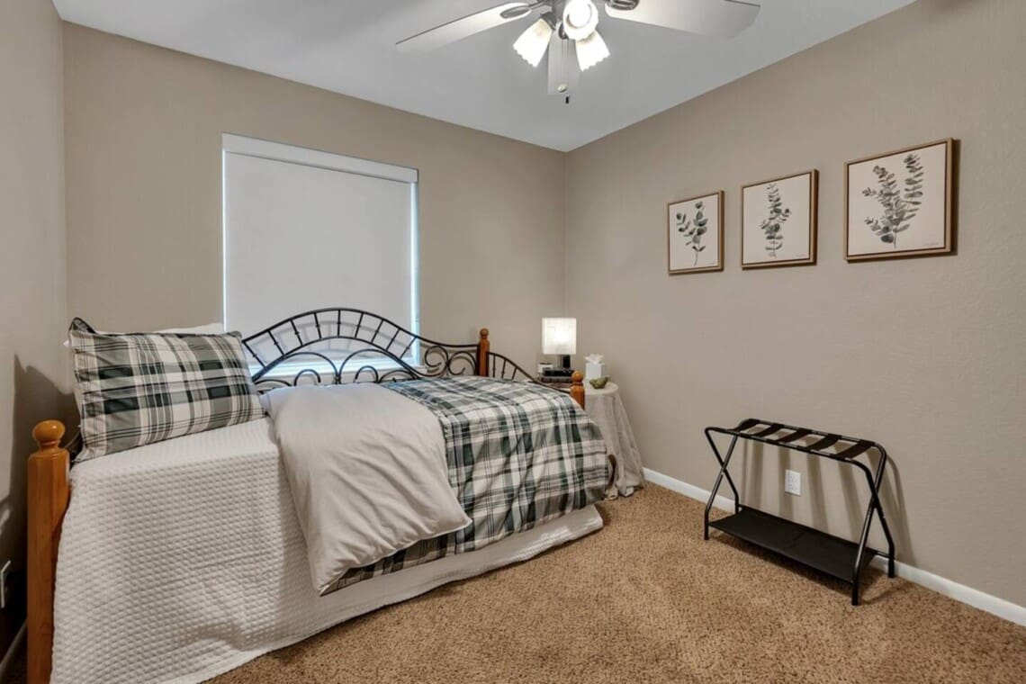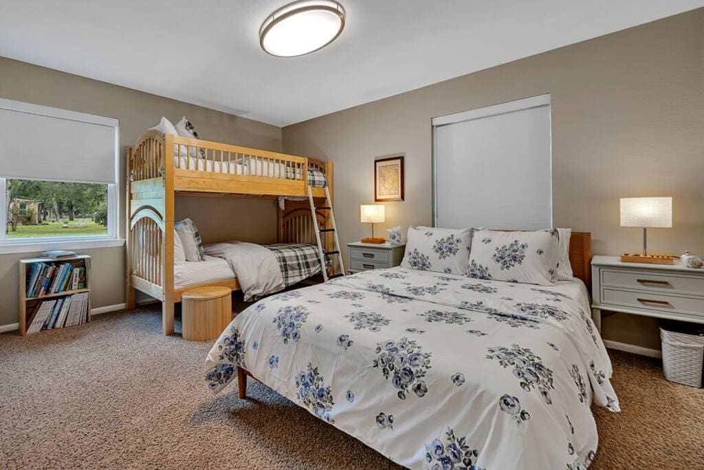 Sleeping for 8 with 2 queens, day bed with trundle, and a set of twin bunk beds
