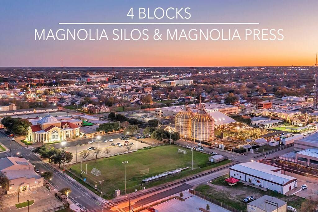 Magnolia Market Silos – .4 miles, Dr Pepper Museum – .6 miles, Waco Convention Center 1.1 miles, Waco Suspension Bridge – 1.3 miles, Waco Downtown Farmers Market – 1 mile, Baylor University 1 mile, Mayborn Science and Children’s Museum 1.4 miles, McLane Stadium – 1.8 miles, Foster Pavilion – 1 mile, Texas Ranger Hall of Fame & Museum – 1.9 miles, Texas Sports Hall of Fame – 1.2 miles, Cameron Parek Zoo – 2.5 miles, Cameron Park 2.2 Miles, Top Golf – 4.6 miles, Cottonwood Creek Golf Course – 4.9 miles, Waco Mammoth National Monument – 6.7 miles, Homestead Heritage – 10.7 Miles