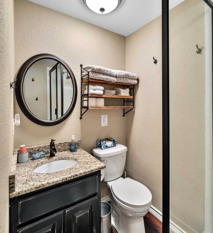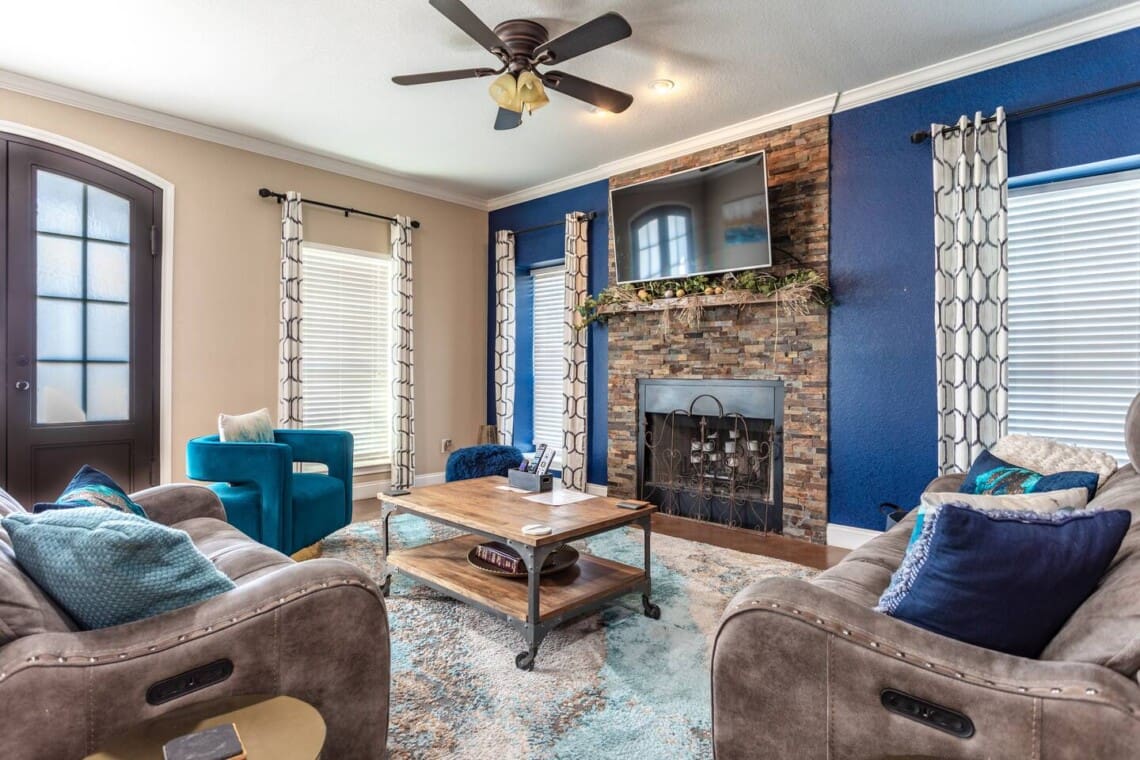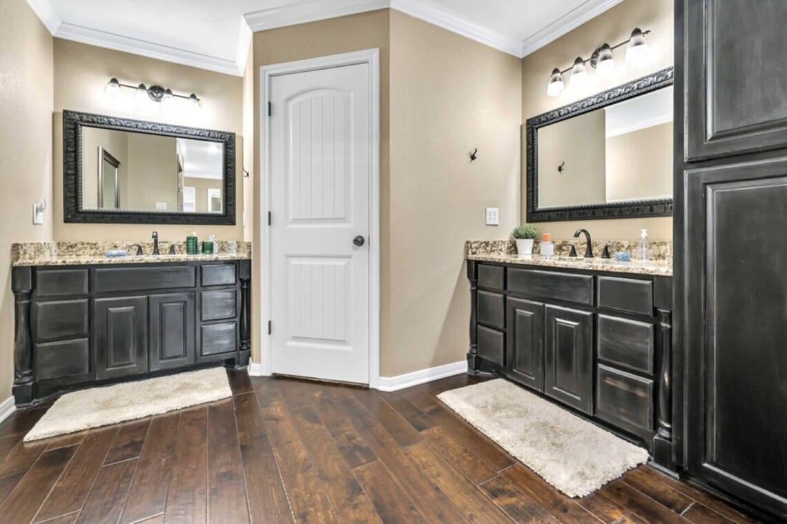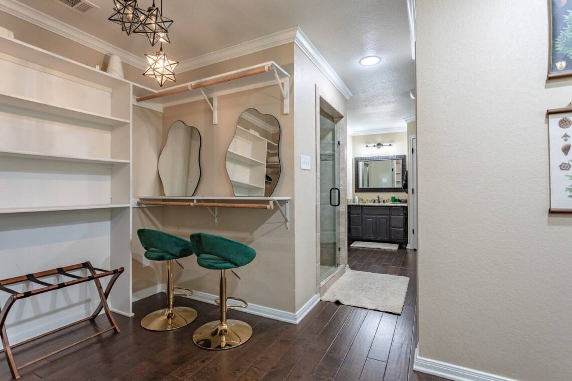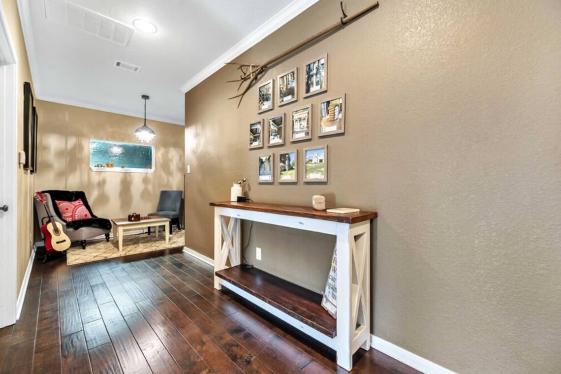 The main house is spectacular! The cement floors and granite countertop perfectly match for a stunning downstairs area. The extra-large bar allows for plenty of setting or places to place large amounts of food for family gatherings. The upstairs contains a private reading/game area and three bedrooms.