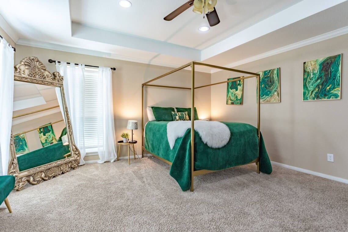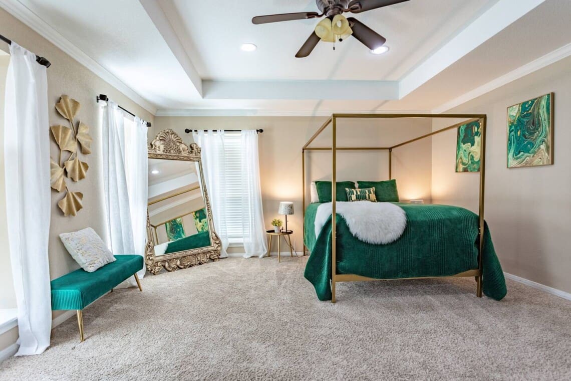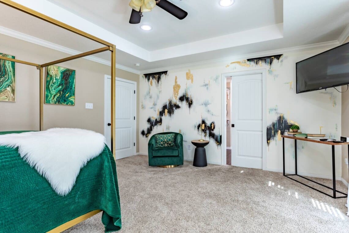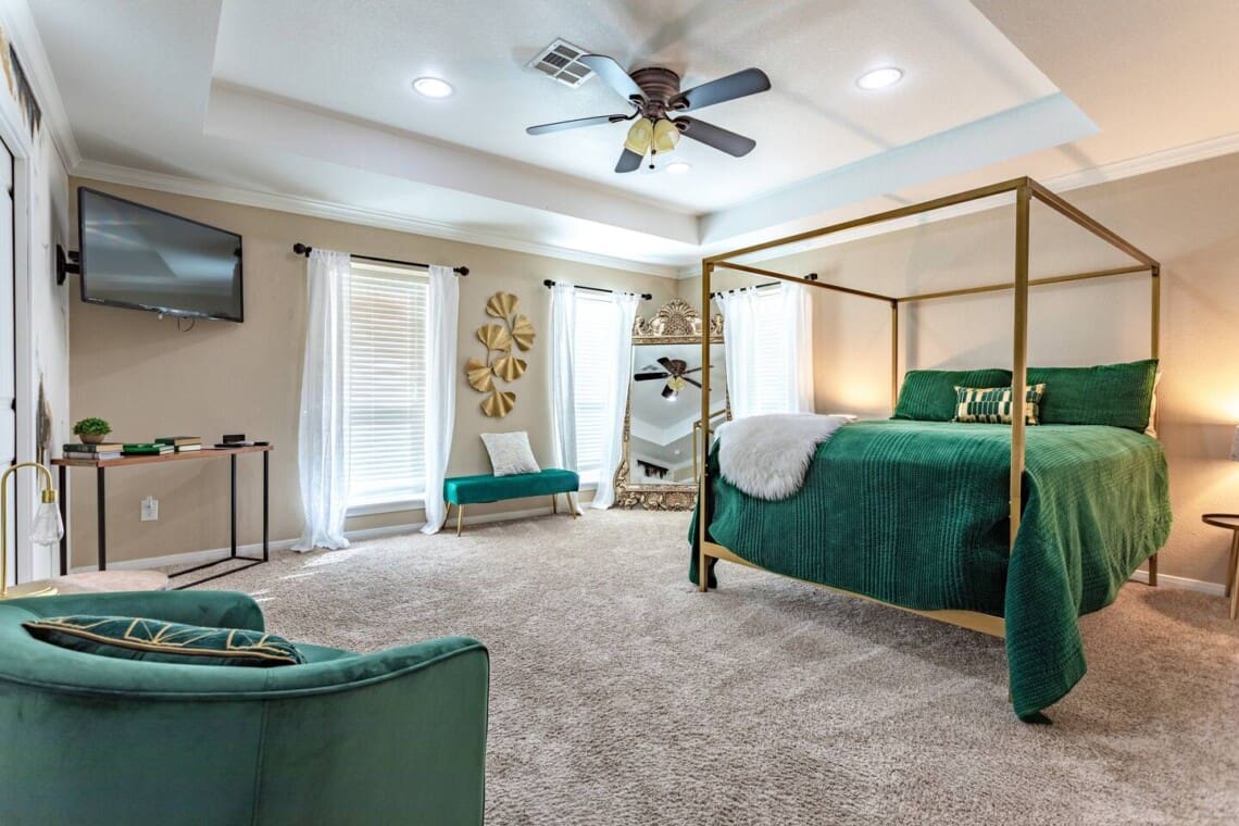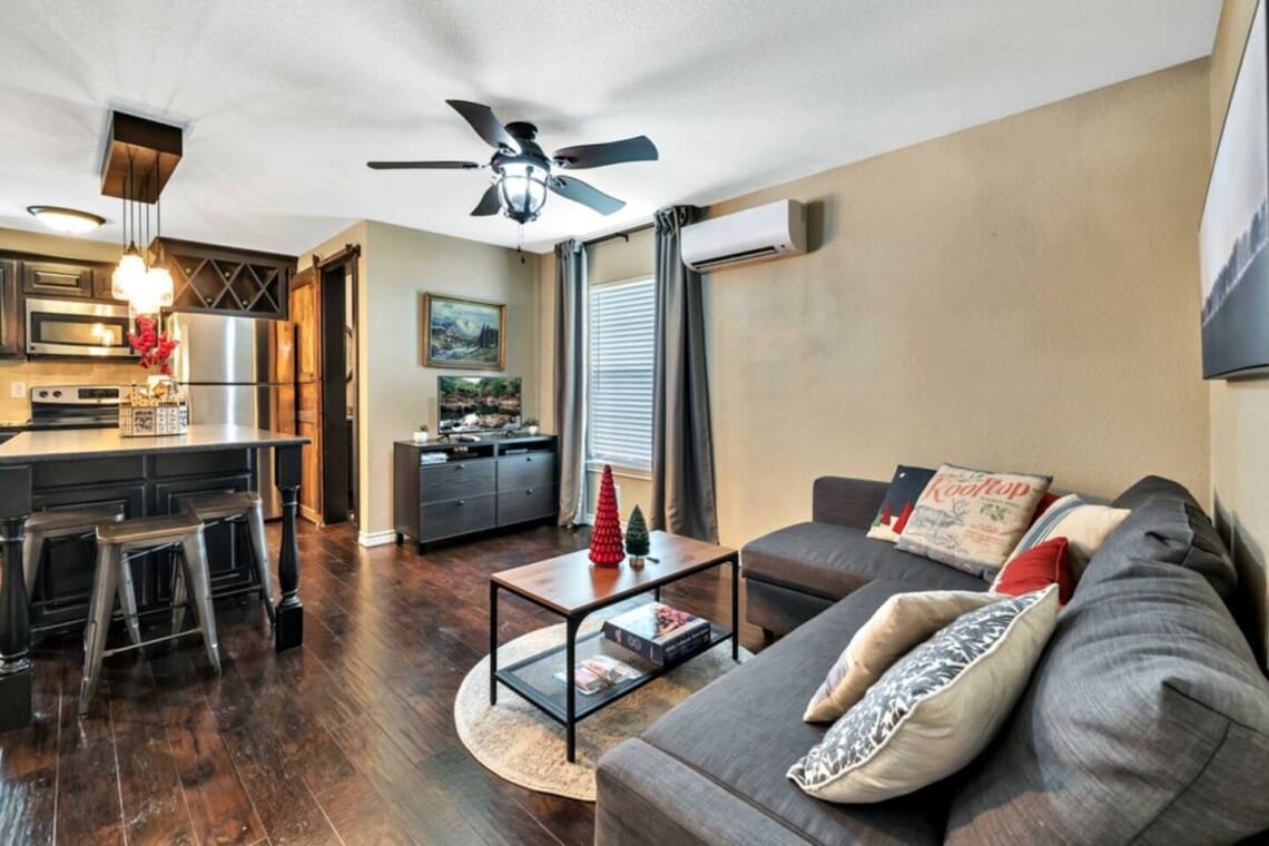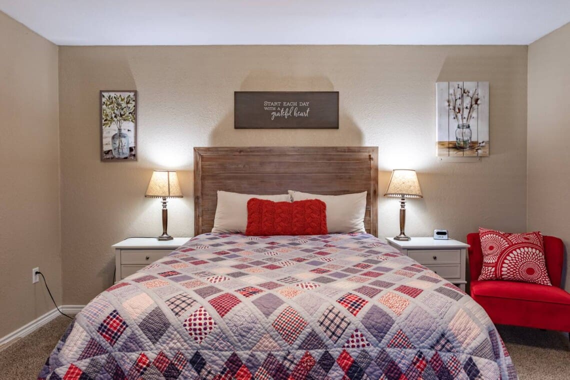 The mother-in-law suite has a queen size bed and a comfortable pull out sectional couch.