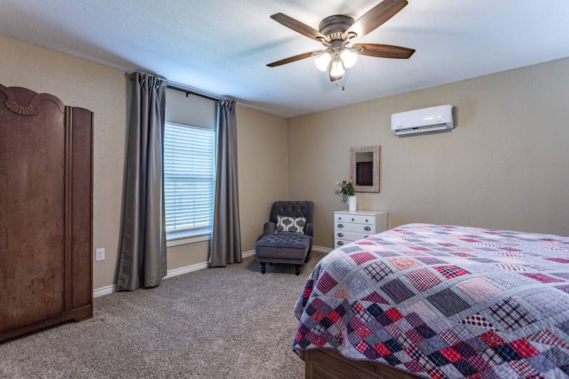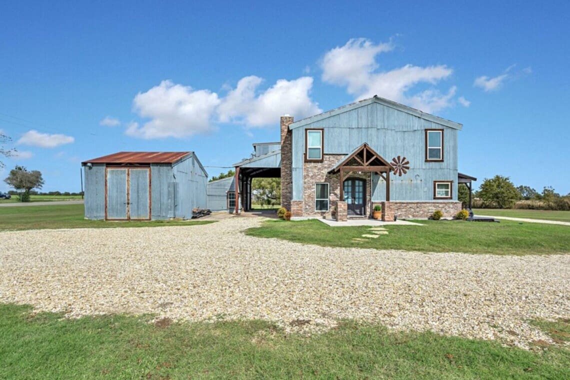 This stunning property is truly one of a kind. One of the five original cotton gins in Levi has been converted to a lovely home. The gin sits on a sprawling 3.77 acres with a tree lined creek on one side. The home is a perfect mix of old and new. From the original tin to new stone, it truly is a magnificent eye-popping house. The home is split into two sections. The mother-in-law suite and the main home. The old scale can still be seen in between the two units. The mother-in-law suite is a 1 queen bed in bedroom with queen sofa bed in living area, 1 bath unit with full kitchen and living room. It perfectly matches the main house.