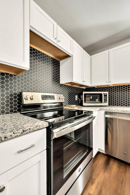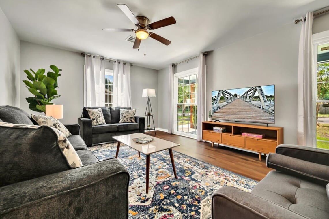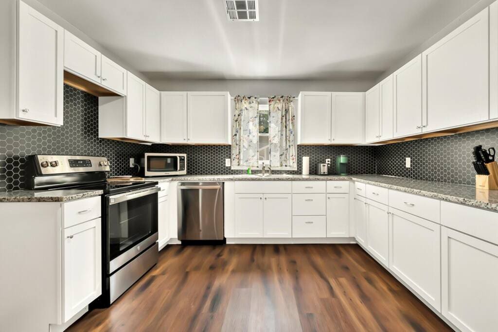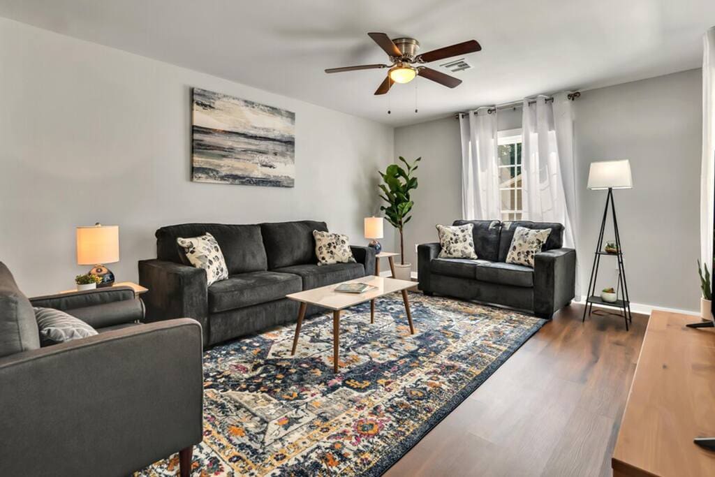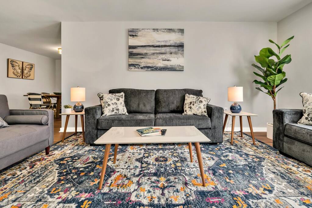 The spacious living area is ideal for unwinding after a long day, while the fully equipped kitchen makes meal preparation a breeze. Enjoy restful nights in any of the three serene bedrooms, each outfitted with plush bedding, ample storage and room darkening shades. The two pristine bathrooms offer a clean & modern experience with convenience & style combined.