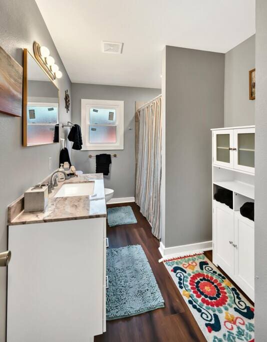 Welcome to The Sanger Suite, a beautifully renovated 3-bedroom, 2-bath home in Waco. Brand-new furnishings, responsive hosts and a prime location near popular spots like Magnolia Market and Cameron Park set this beautiful home apart from the rest. With major employers such as Baylor University, Ascension Providence Hospital, Baylor Scott & White Hospital, and Amazon just minutes away, and top restaurants and stores within a 10-minute drive, this is your ideal oasis for stays of 30 days or more.