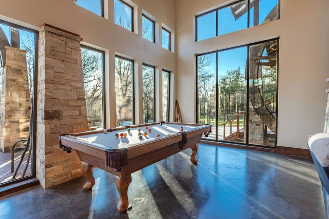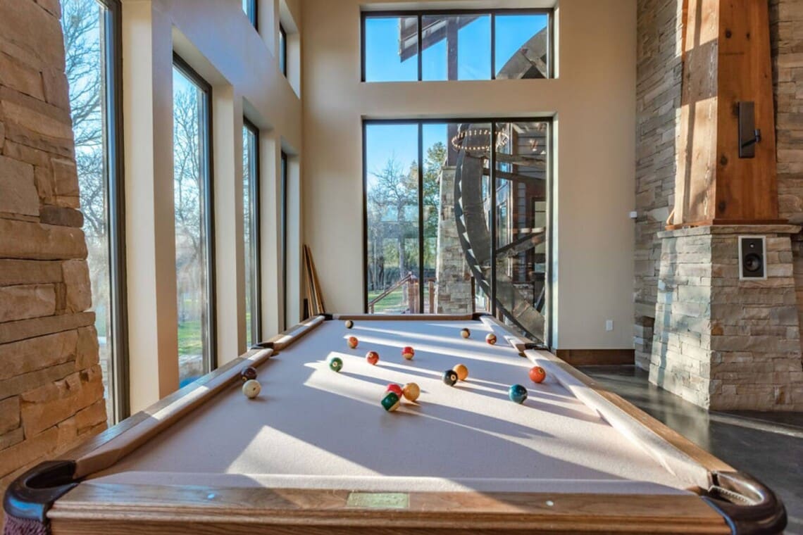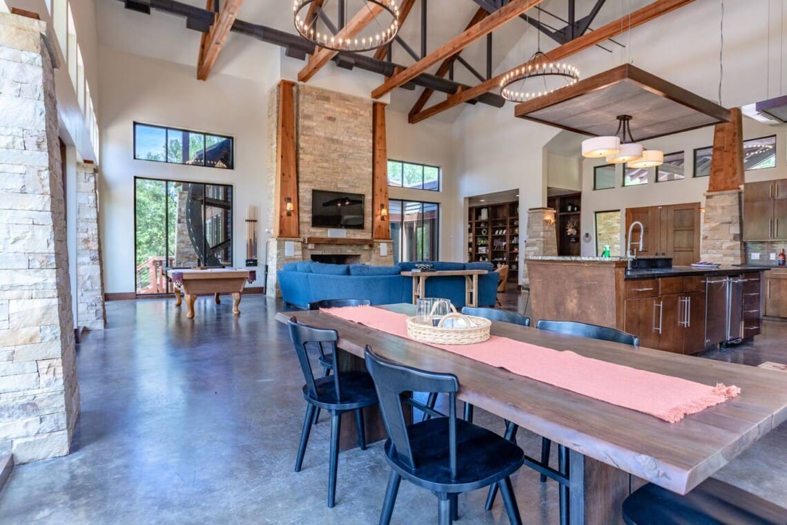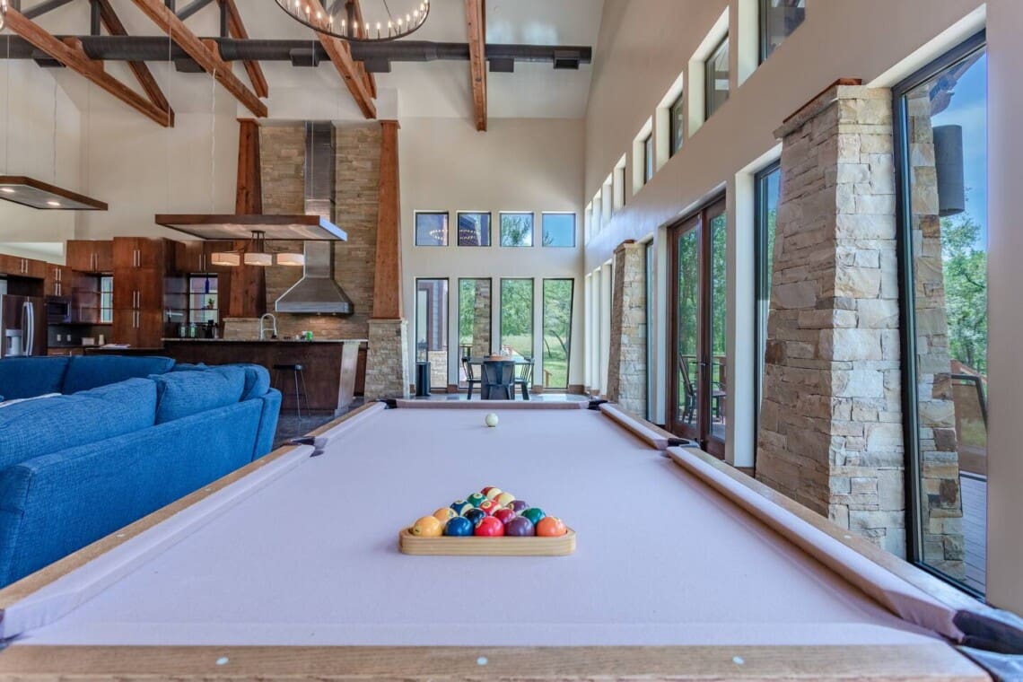 Relax and unwind in the spacious living area complete with pool & poker tables. Whether you’re enjoying a movie night by the fireplace or hosting a gathering with loved ones, this inviting space sets the scene for unforgettable memories.