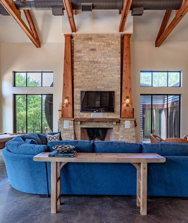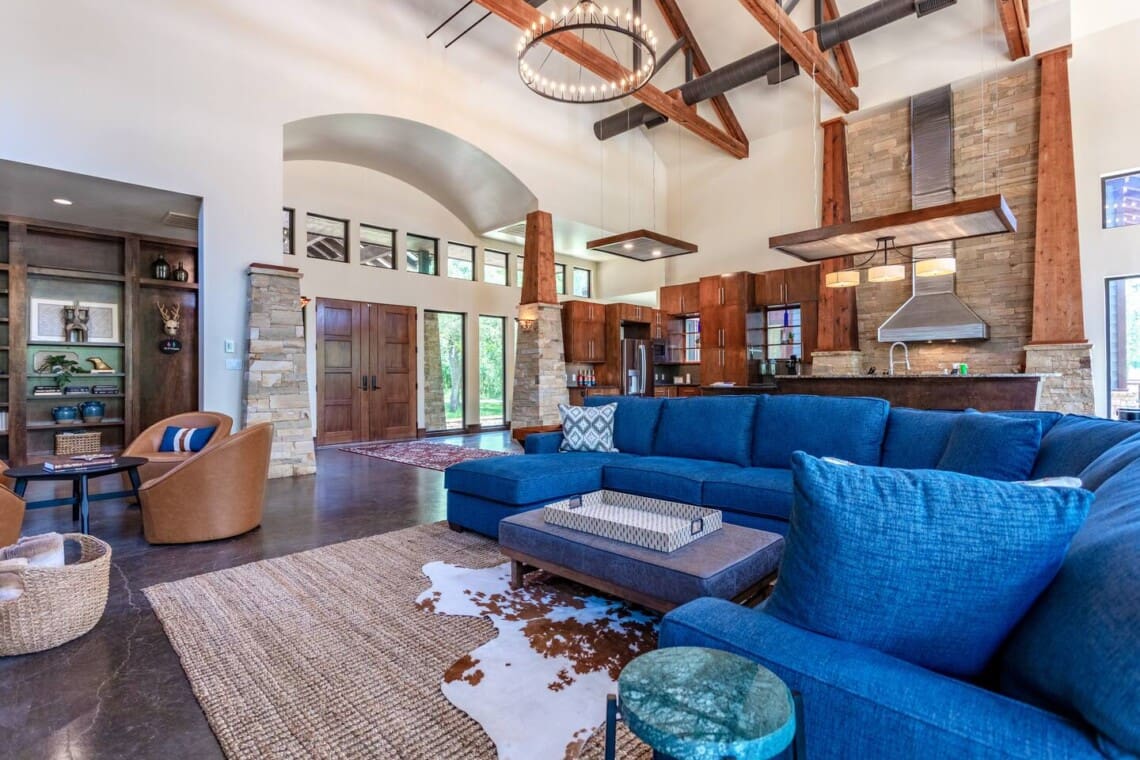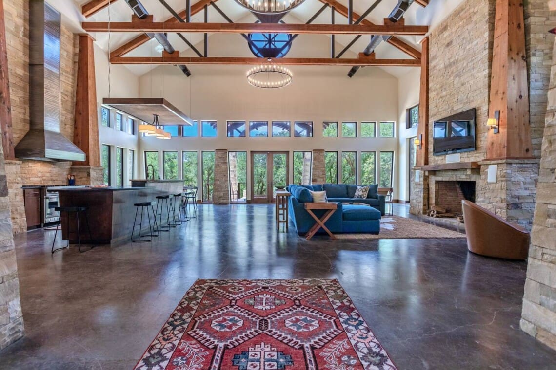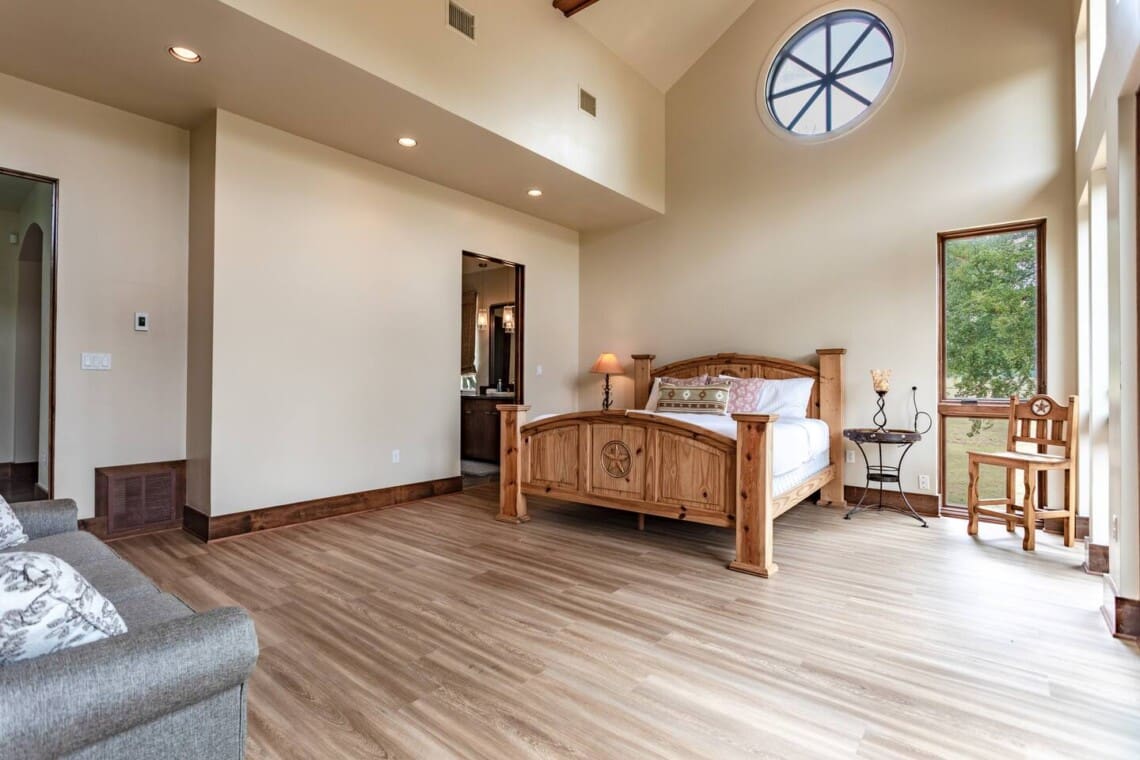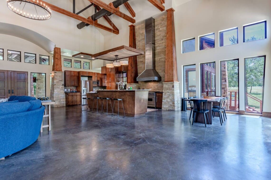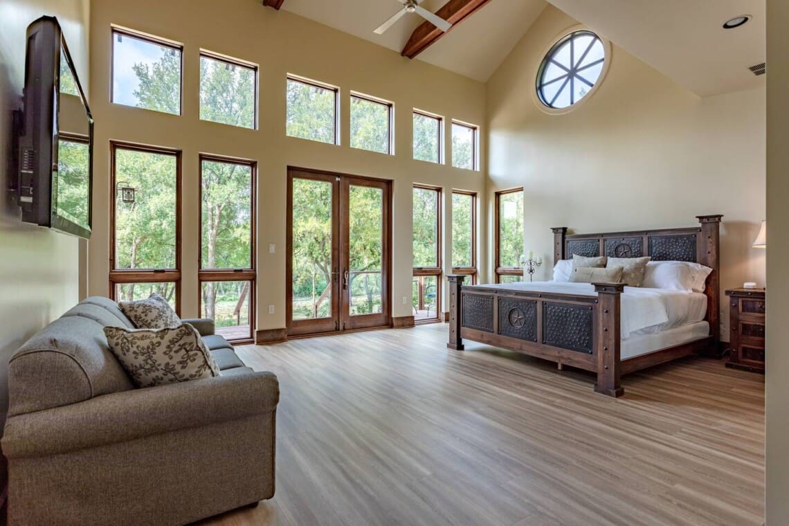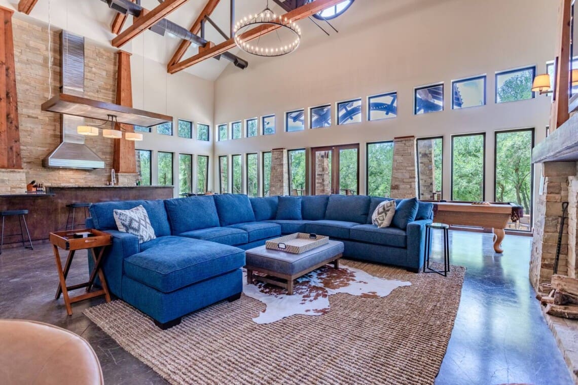 Once dubbed the “Most Incredible Mansion Rental in Texas” The Tonkawa Riverside Retreat is back & better than ever! Escape to tranquility and luxury at our exquisite 4200 square foot home nestled only 25 minutes from downtown, Waco! Perfectly situated on expansive acreage & boasting breathtaking country views, this idyllic retreat is your ticket to relaxation and rejuvenation. Step into the spacious living area featuring high ceilings framed by beautiful beams and sprawling windows framing panoramic views of the surrounding natural beauty. With 4 bedrooms and 4.5 bathrooms, our home offers a serene sanctuary for up to 14 guests.