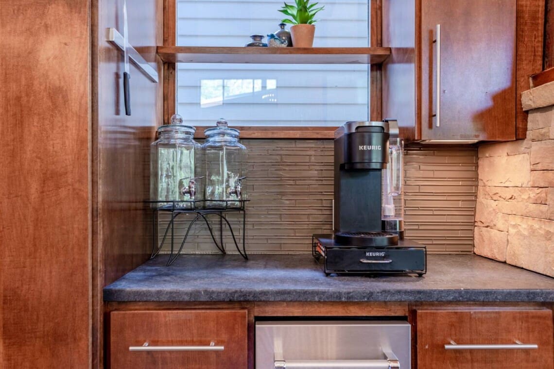 Step outside (with steaks in hand) to our charming bar and kitchen area. Grill up your favorite dishes while soaking in the ambiance of the surrounding nature. Don’t forget to try your hand at fishing in the nearby creek, where you are welcome to cast a line and reel in the day’s catch. Note: this creek water level depends the season and rainfall.