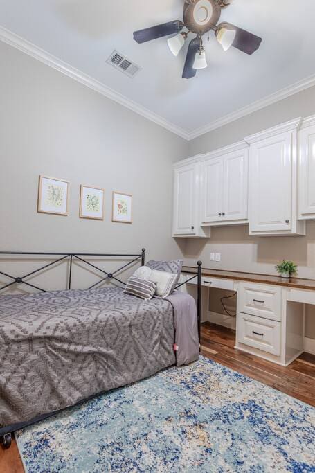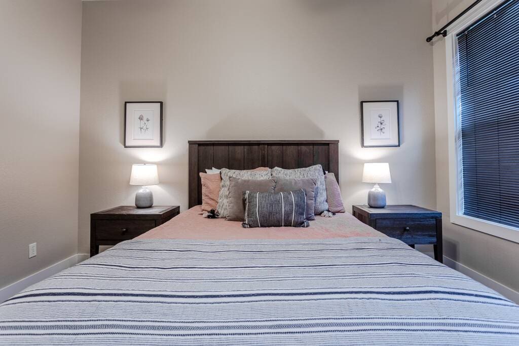 The main house has 5 bedrooms – one king bed in the master, two queen bedrooms, a daybed + trundle in the office, and a large bunk room with 2 single beds over 2 full beds.